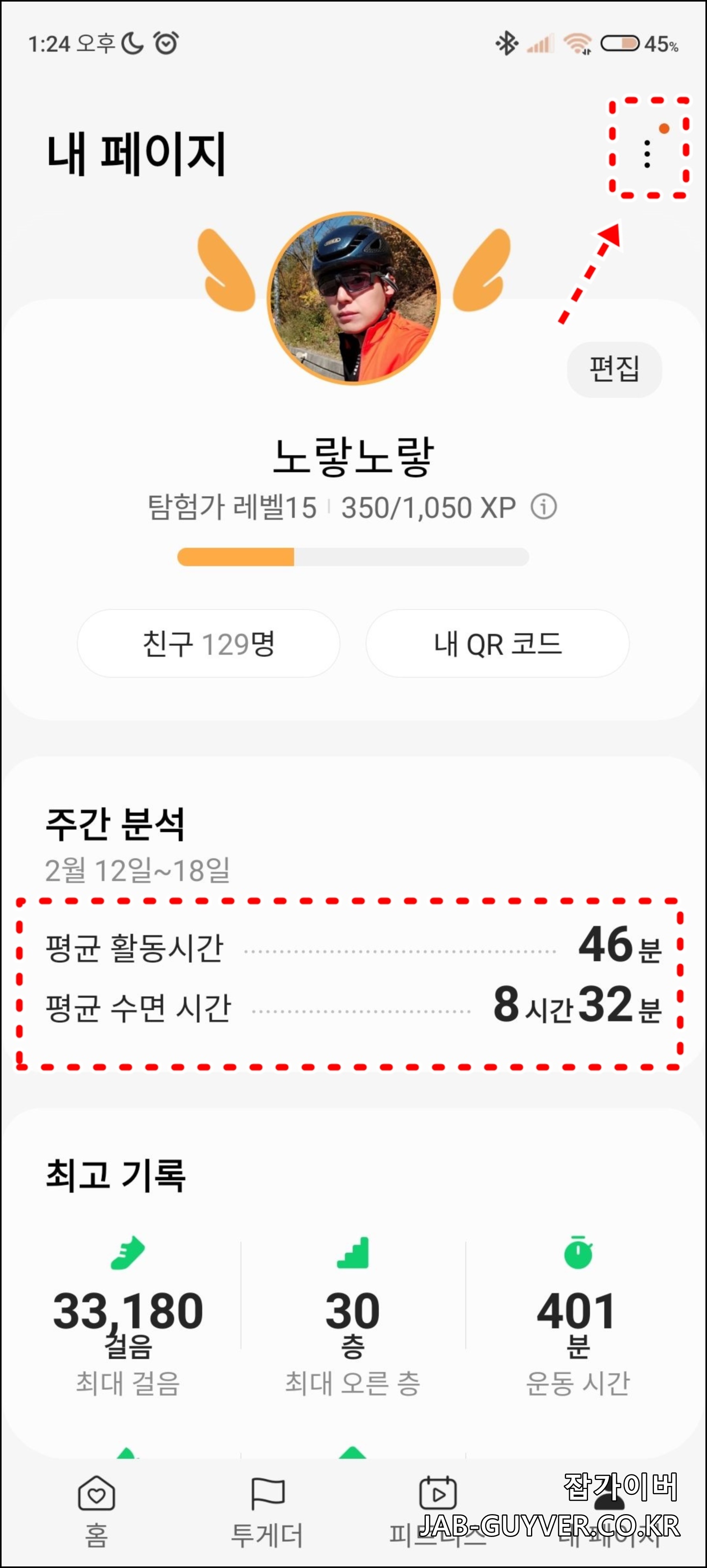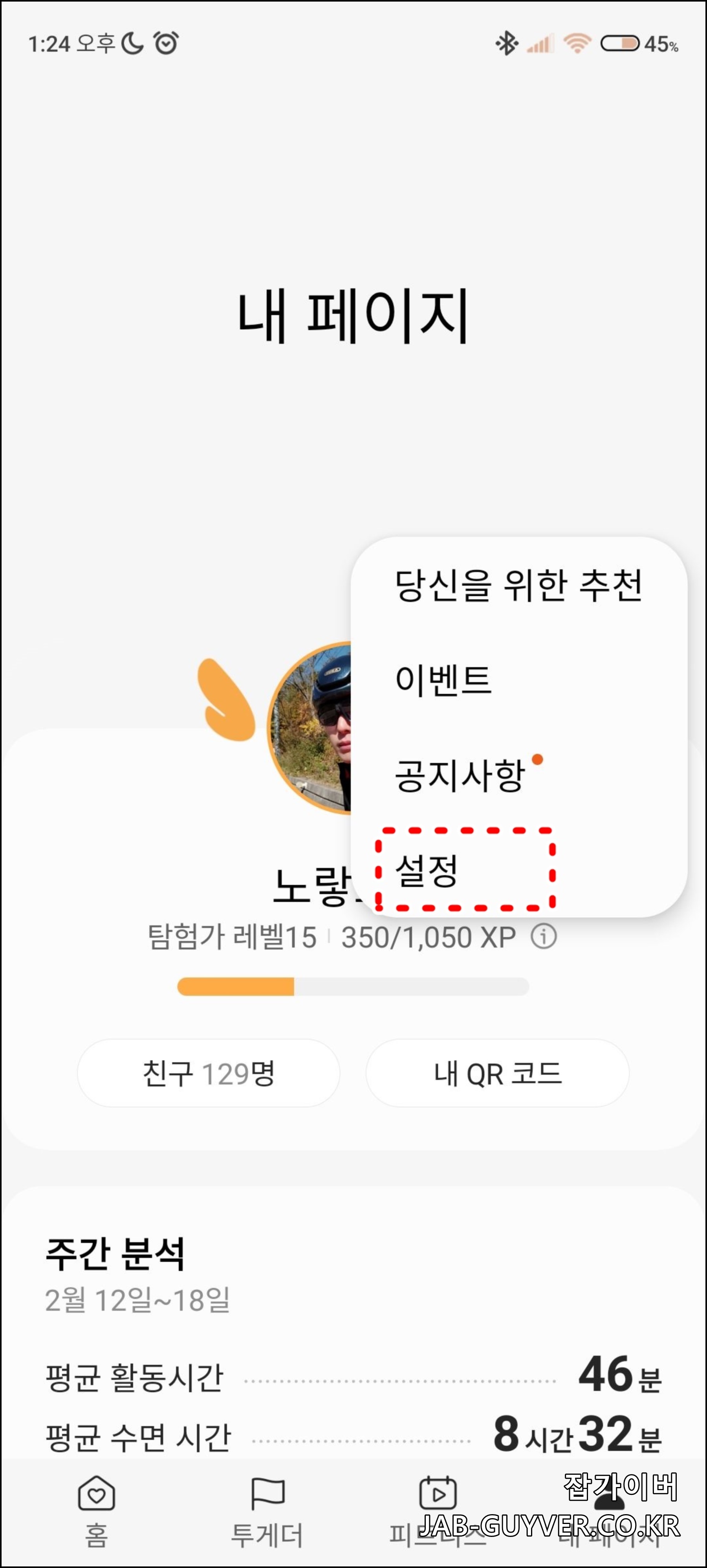 삼성헬스 걸음수 만보계 설정