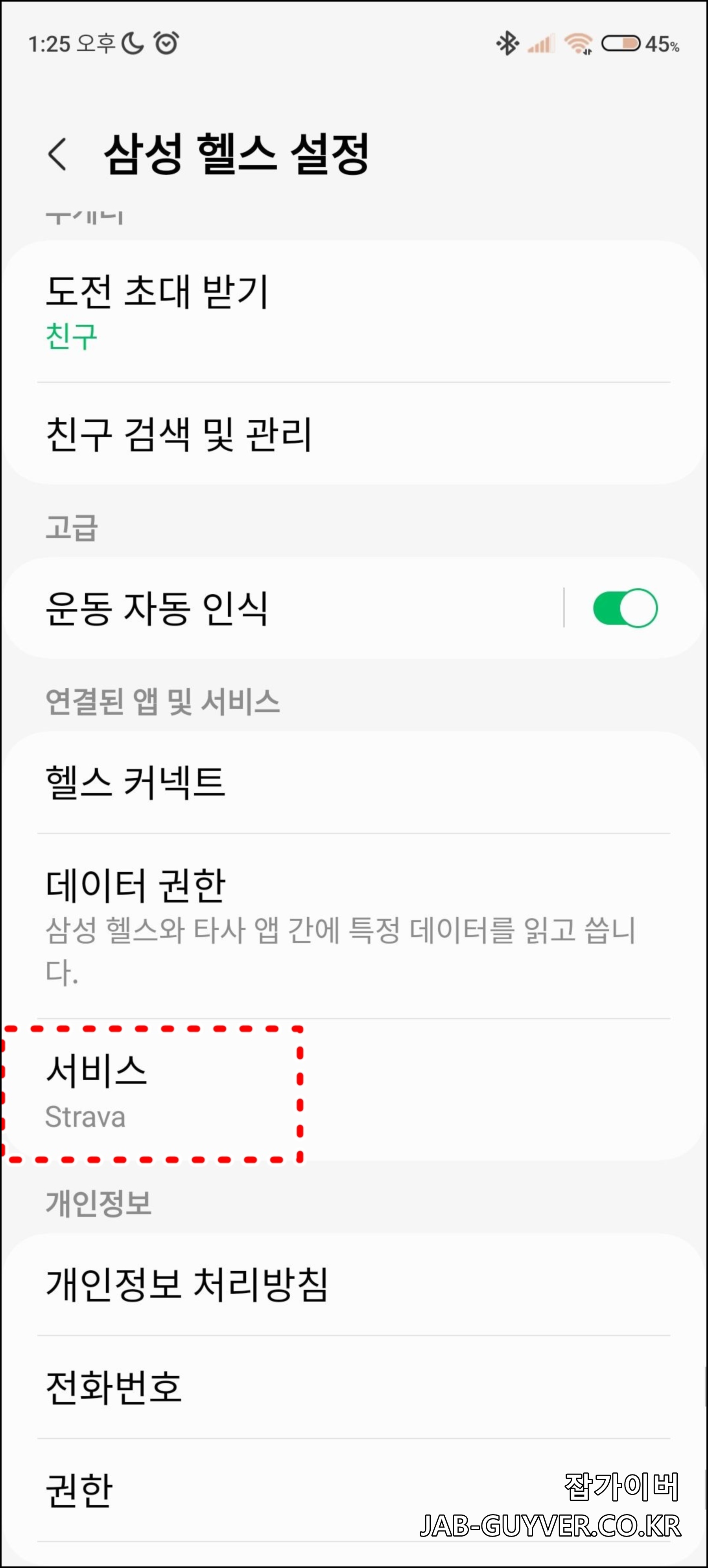 스트라바의 경우 서비스 탭에서 Strava 앱과 동기화 바로 할 수 있습니다.