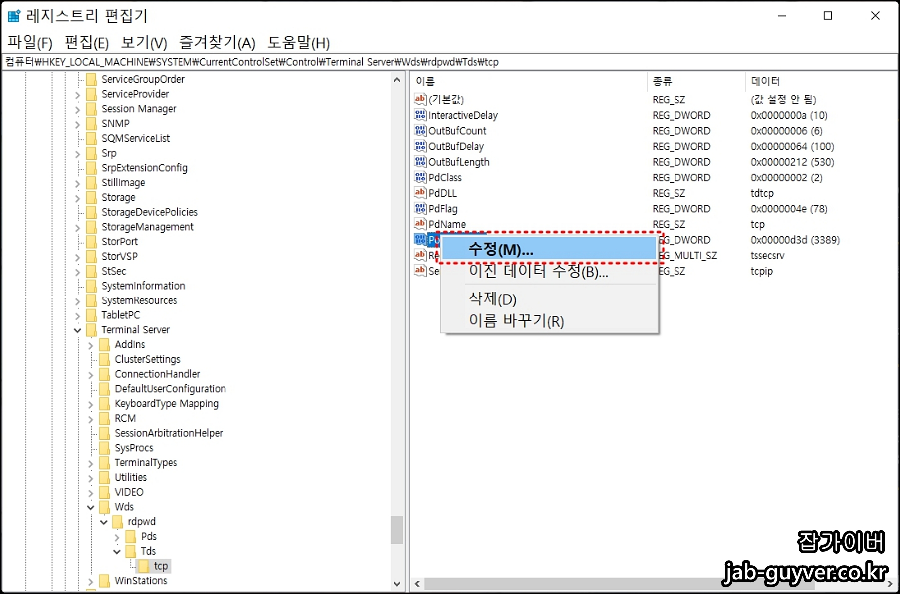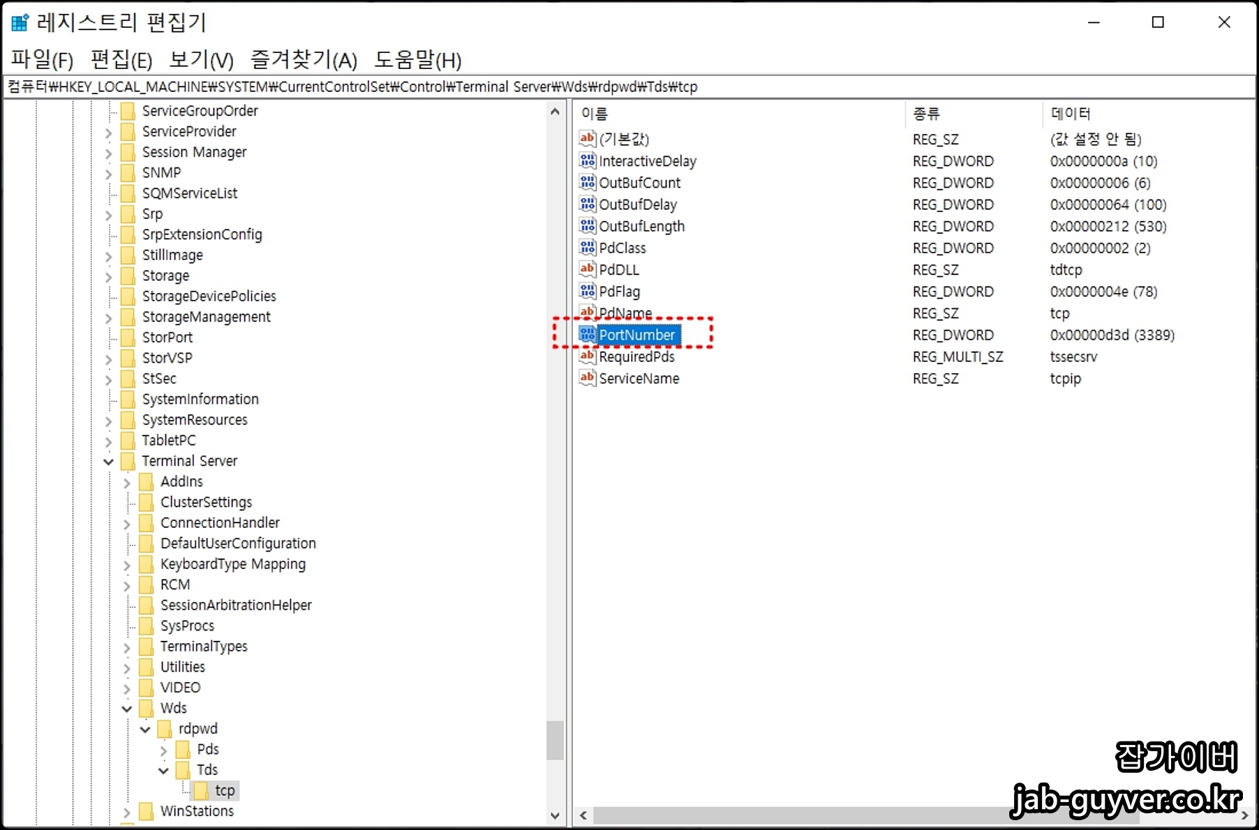 네트워크 포트를 변경후에도 원격 데스크톱 연결이 안된다면 아래 레지스트리 편집을 참고합니다.