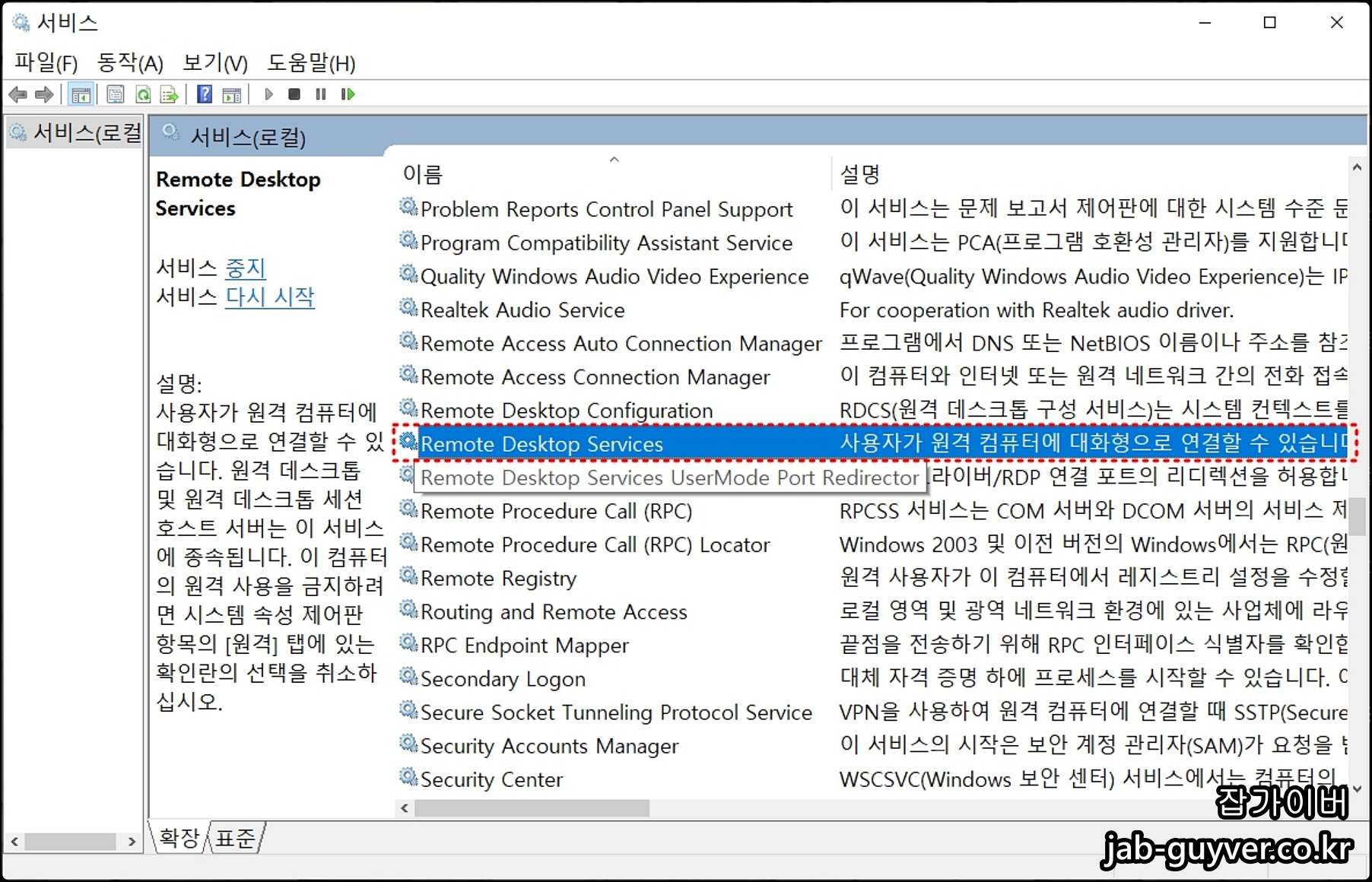 Remote Desktop Services 항목을 선택합니다.