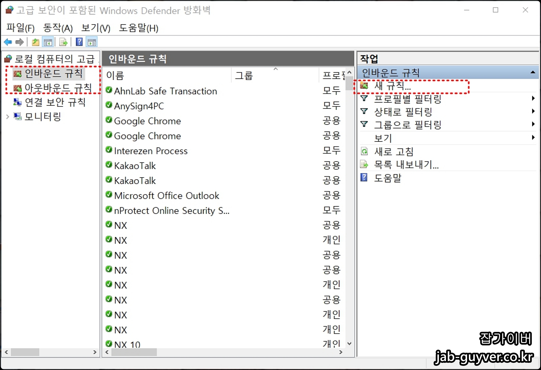 윈도우 인바운드 아웃바운드 방화벽포트 연결 및 차단