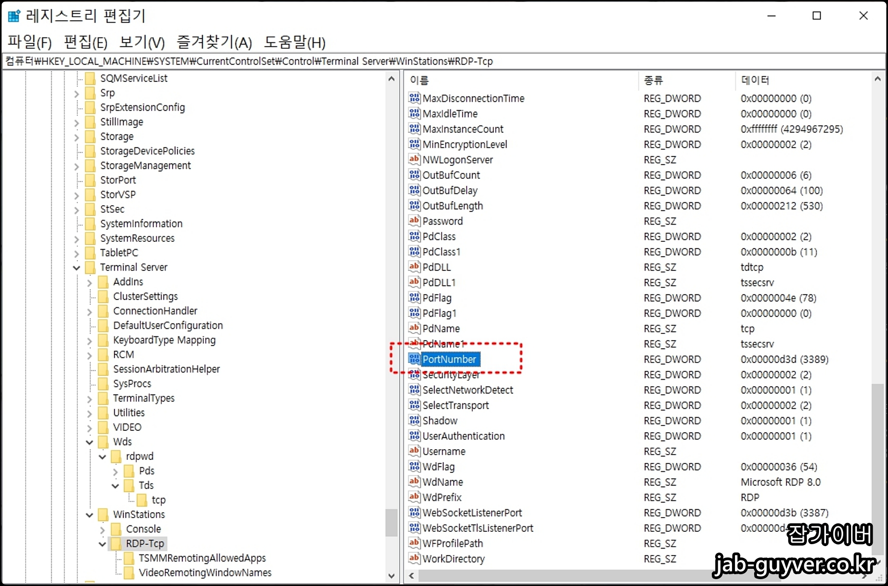 네트워크 포트를 변경후에도 원격 데스크톱 연결이 안된다면 아래 레지스트리 편집을 참고합니다.