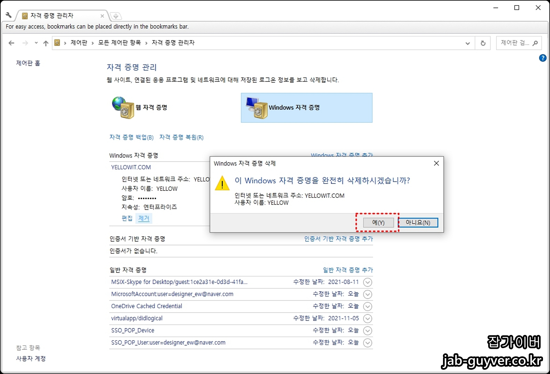 윈도우 자격증명 관리자 로그인계정 삭제