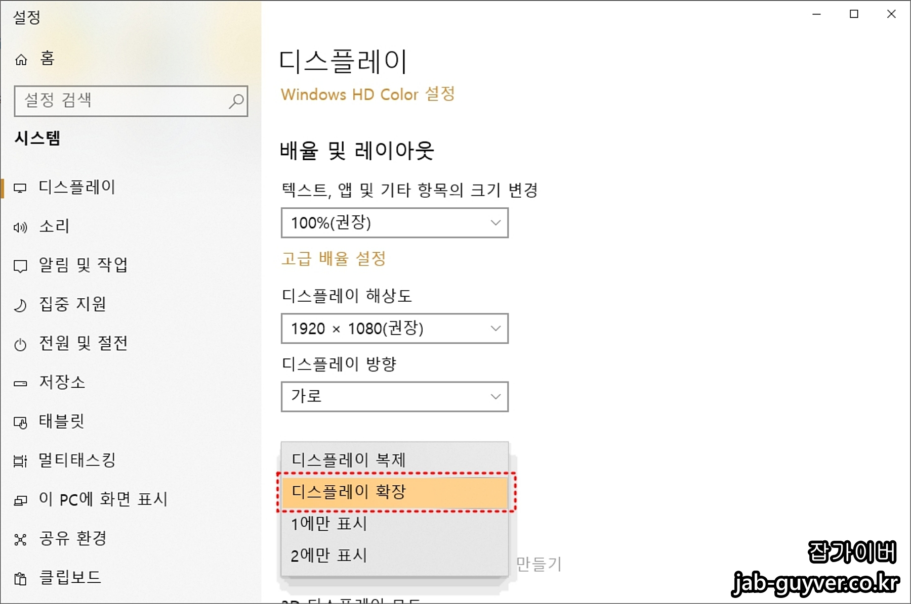 - 하단 ‘다중 디스플레이’ 항목에서