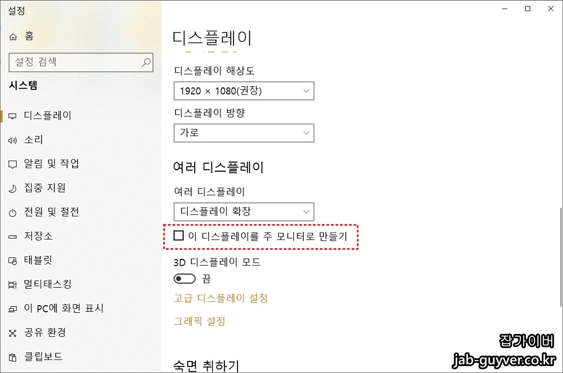 주 메인 디스플레이로 설정