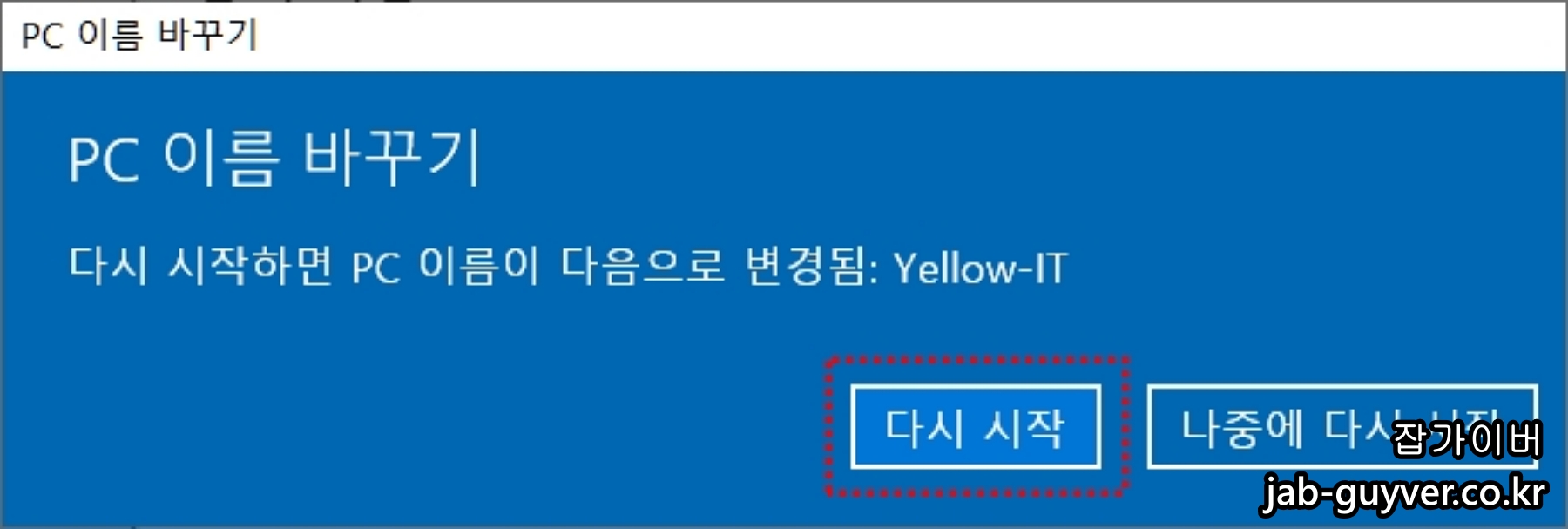 이후 컴퓨터를 재부팅하면 윈도우 사용자이름이 변경됩니다.