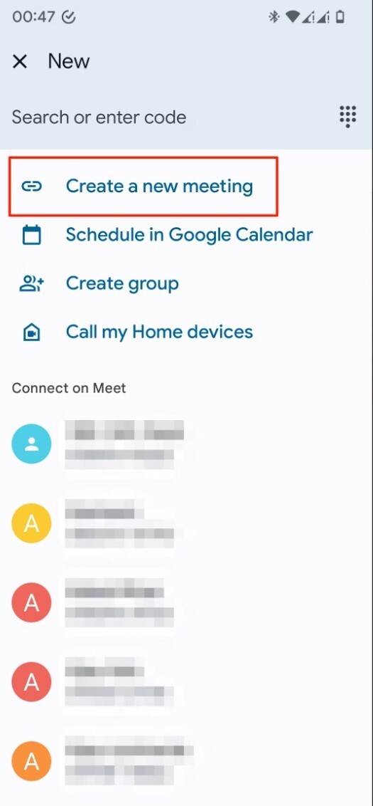 모바일에서 구글 미트 회의 시작