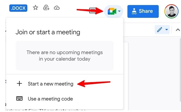 회사는 Google Meet을 Docs, Sheets, Slides와 같은 모든 생산성 앱에 통합했습니다. 문서, 프리젠테이션 또는 재무 시트를 검토하는 경우 클릭 한 번으로 새로운 Google Meet 통화를 작성할 수 있습니다. Google Docs에서 실제로 확인해 봅시다.
