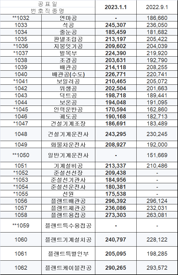 | 1051 | 기계설비공 | 213,337 | 210,486 |