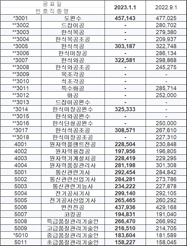 | *1041 | 보일러공 | 210,465 | 205,072 |