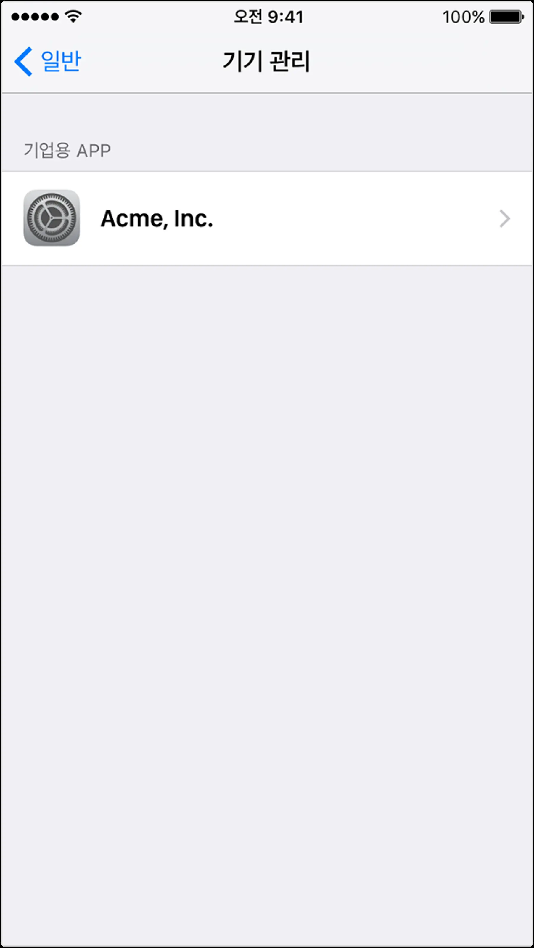 A. 설정 > 일반 > 기기관리 메뉴는 앱 설치 후에만 표시됩니다. 즉, 앱이 설치되지 않았다면 해당 메뉴는 숨겨져 있으며, 앱을 수동으로 설치하고 실행 시도 후에야 표시됩니다.
