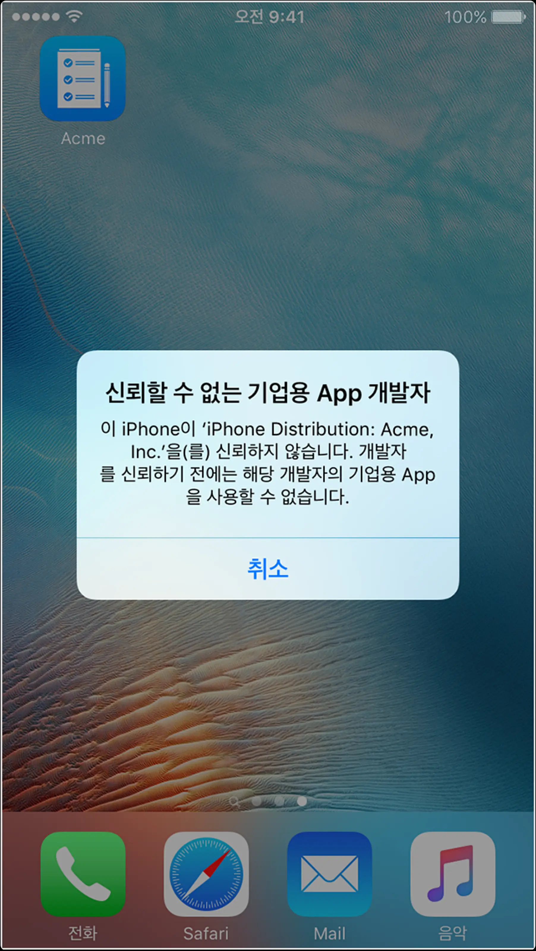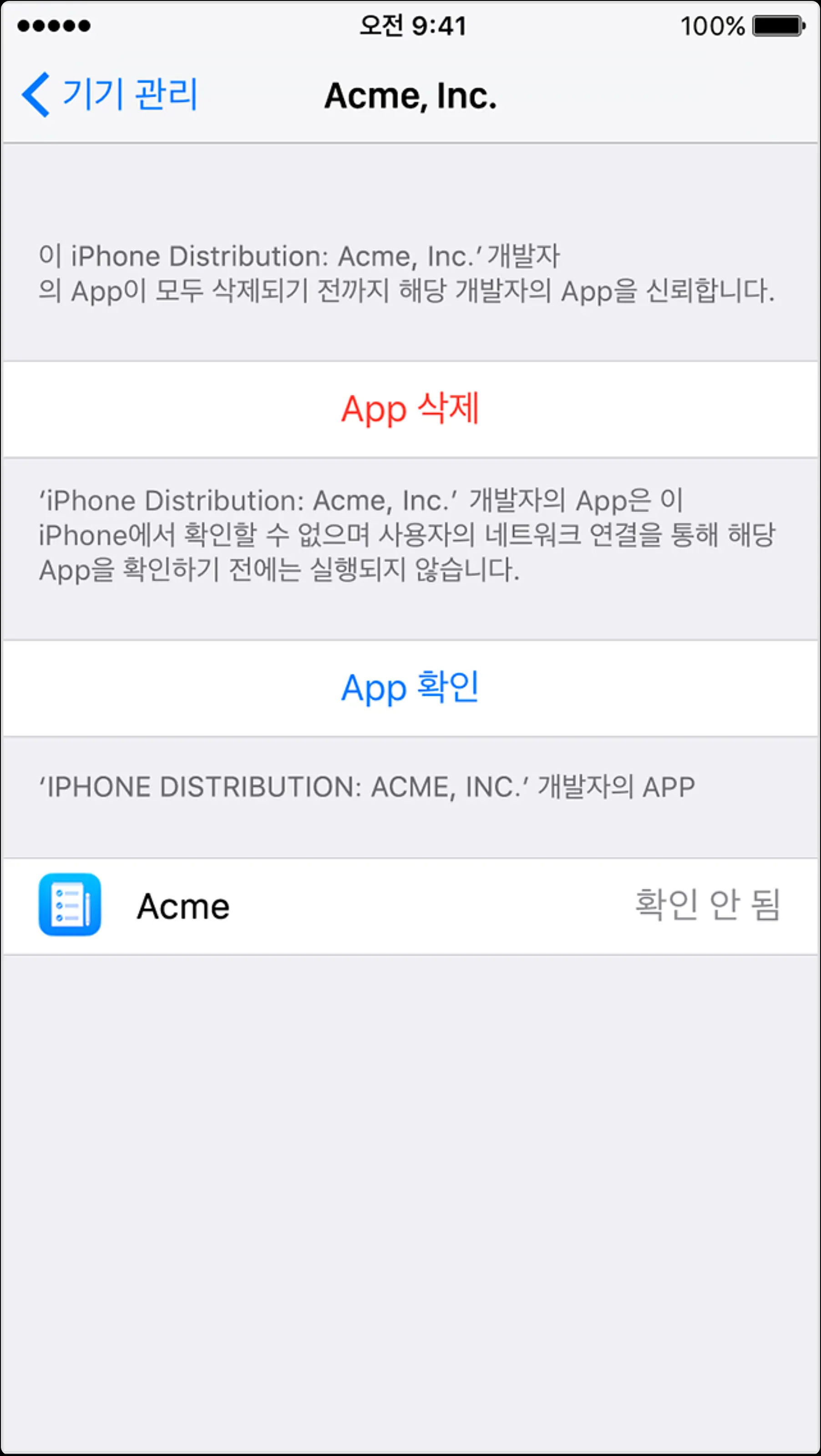 iOS 신뢰할 수 없는 기업용 APP 개발자 알림?
