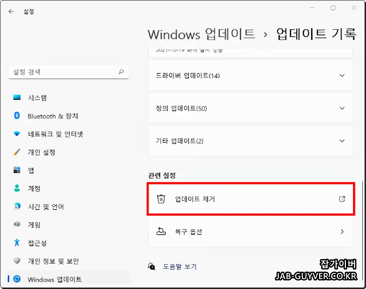 윈도우11 업데이트 제거 재설치 및 차단방법