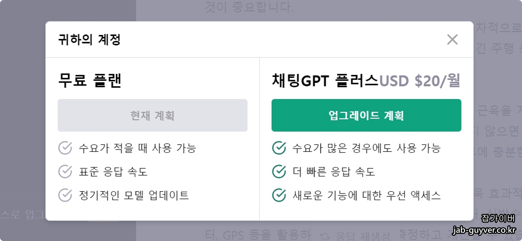 기본적으로 ChatGPT는 무료로 사용할 수 있습니다.