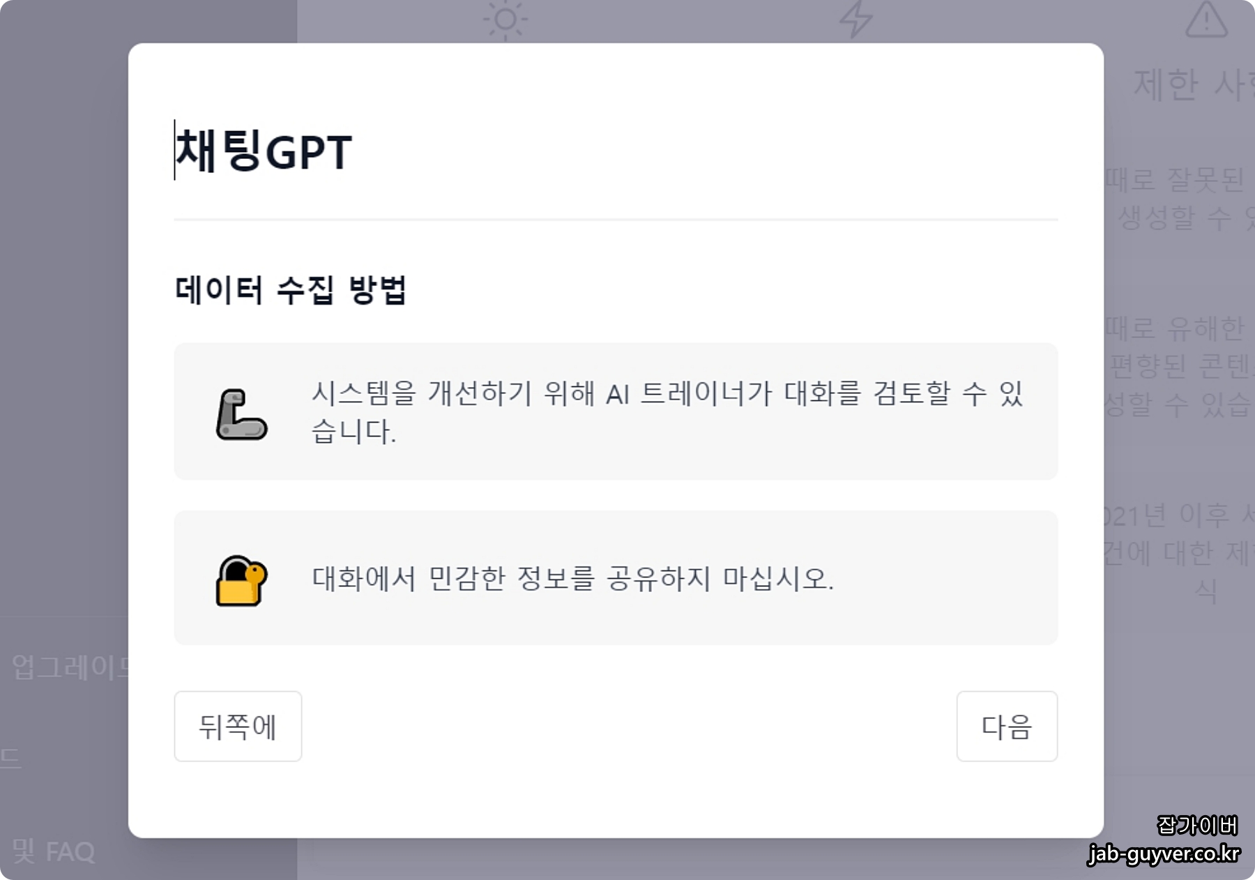 채팅GPT의 한글가이드북으로 ChatGPT로 질문한 내용은 인공지능이 학습 후 다른 사용자의 대답에 대답할 수 있기 때문에 기본적으로 데이터 수집이 검토됩니다.