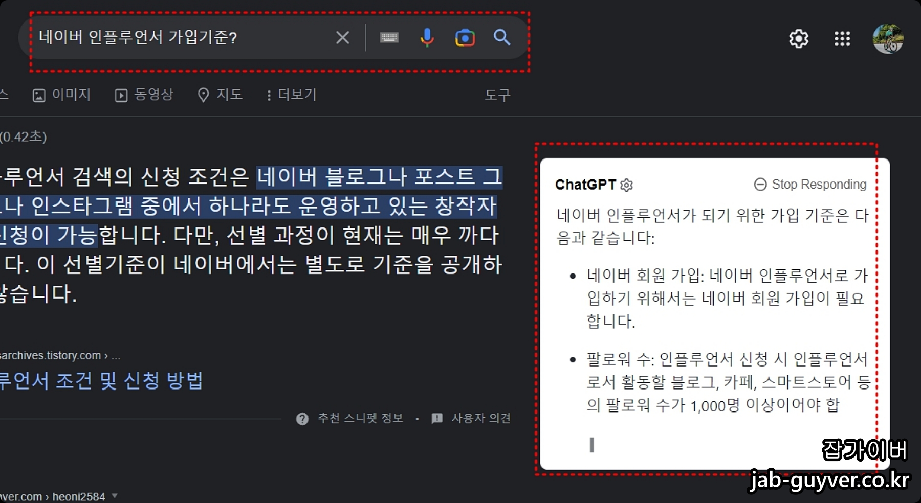 구글 검색 ChatGPT 연동 후 검색