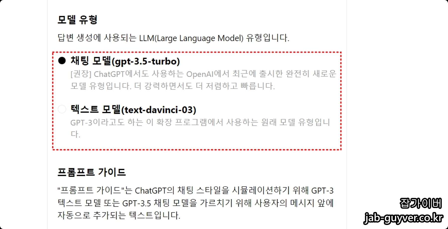 API 버전에서는 채팅모델을 3.5터보 및 텍스트모델 프롬포트 설정등이 가능합니다.