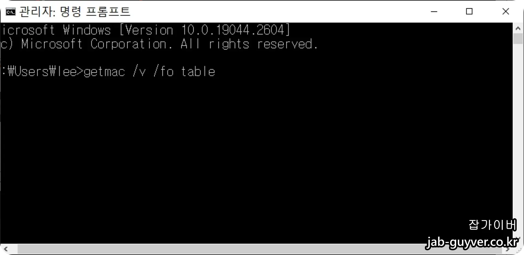 그 외에도 getmac /v /fo table 명령어를 사용할수 있습니다.