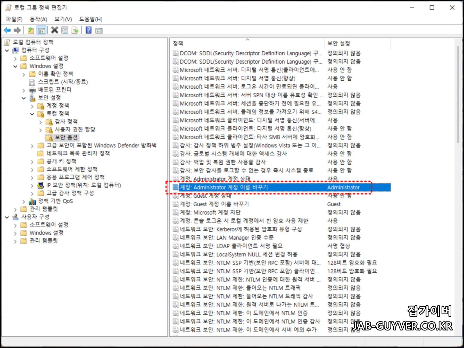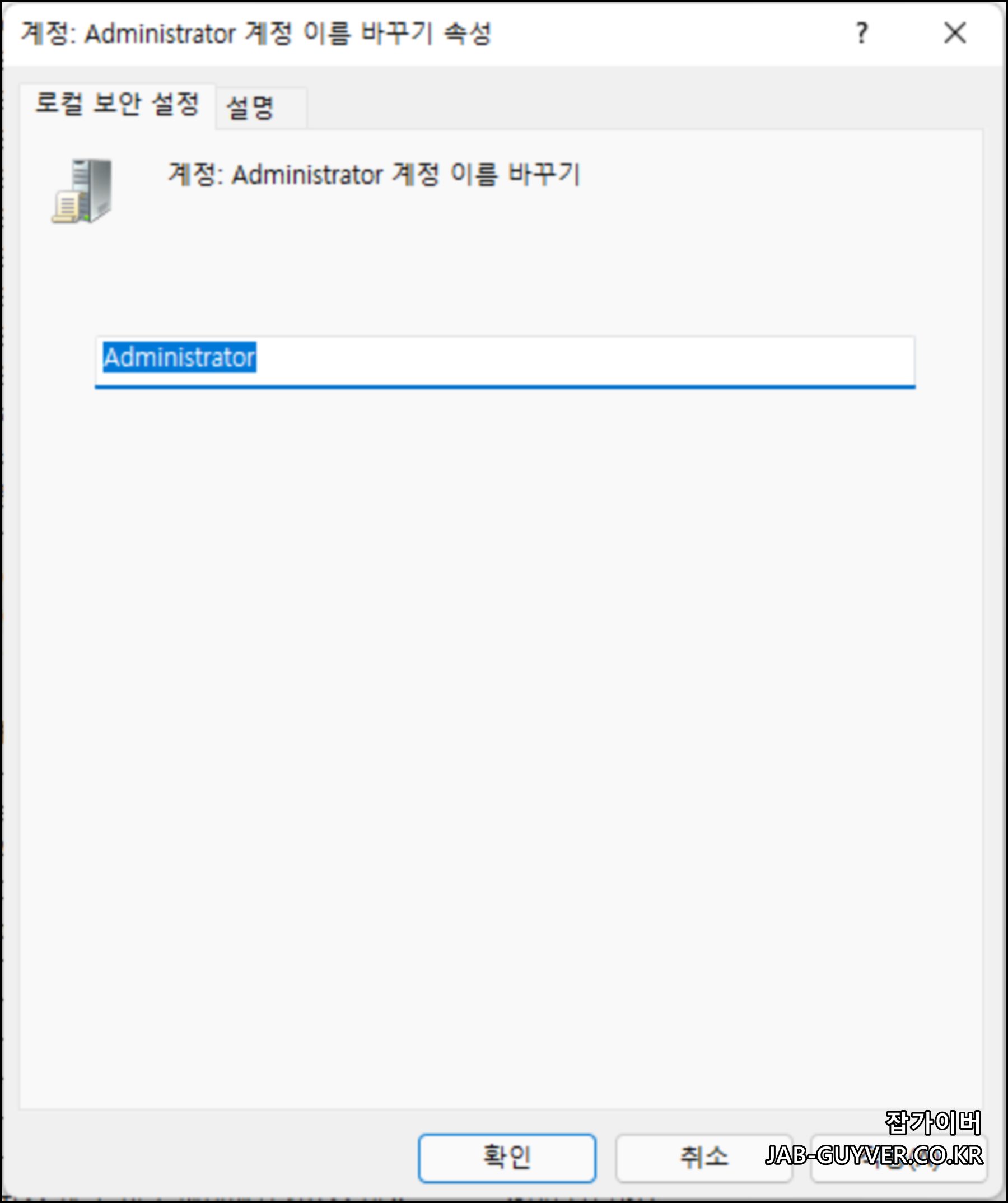 Administrator 이름을 바꾸고 싶다면 계정 이름 변경으로 원하는 사용자 이름으로 바꿀 수 있습니다.