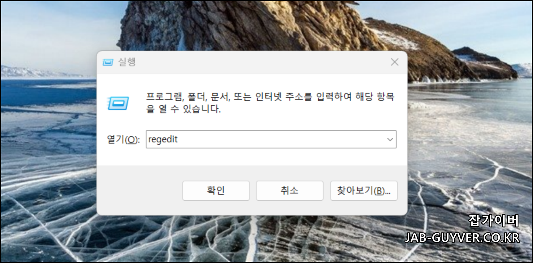 안전모드로 들어왔다면 실행창(윈도우키 + R)에서 regedit를 실행해 레지스트리 편집기를 열고, 아래 경로로 이동합니다.