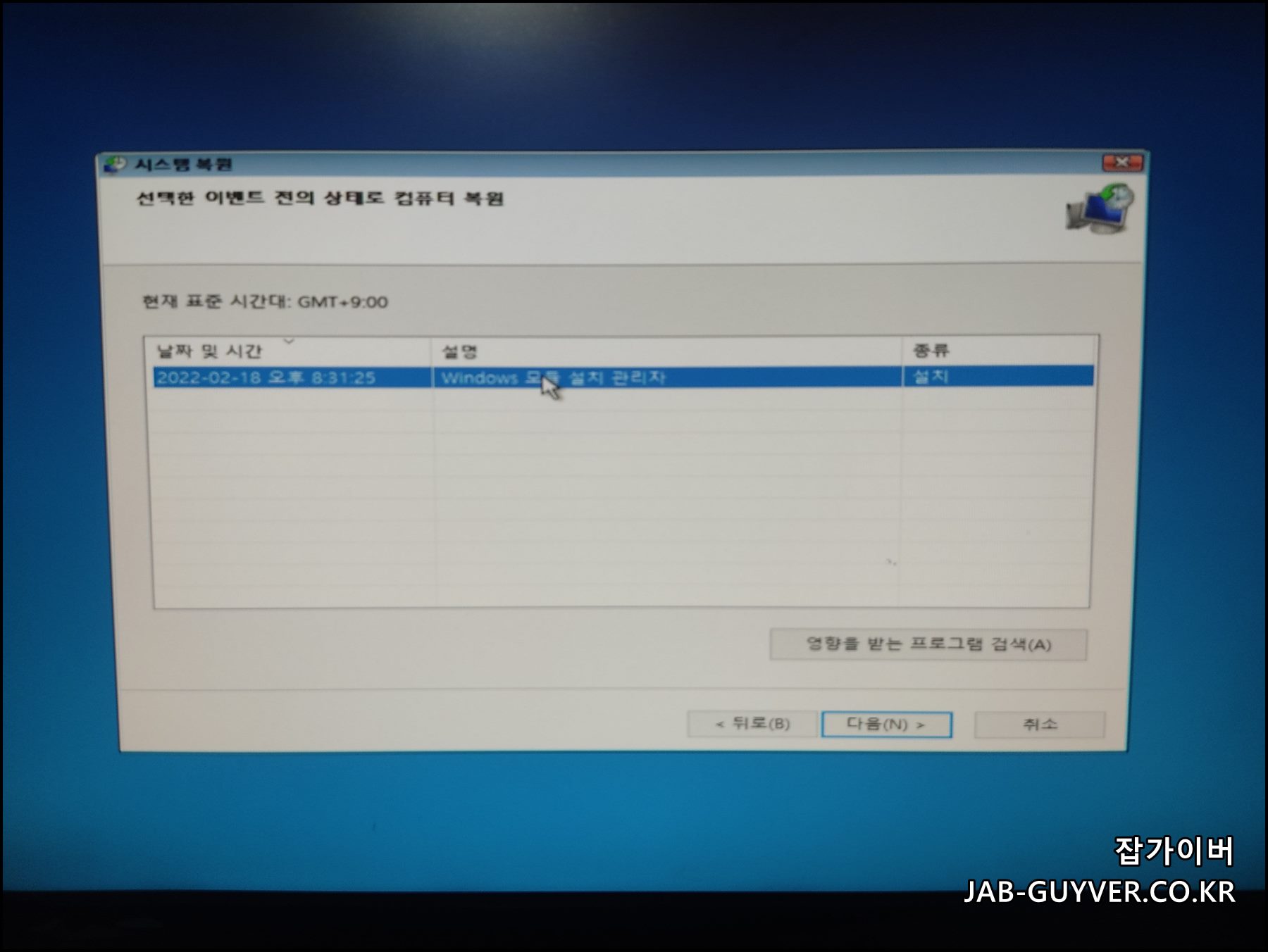 윈도우가 정상 부팅되긴 하는데 기존 사용자계정이 사라진 것처럼 보이거나, 바탕화면 아이콘 및 앱설정이 통째로 초기화된 상태라면 복구지점으로 되돌리는 방식도 효과가 있습니다.