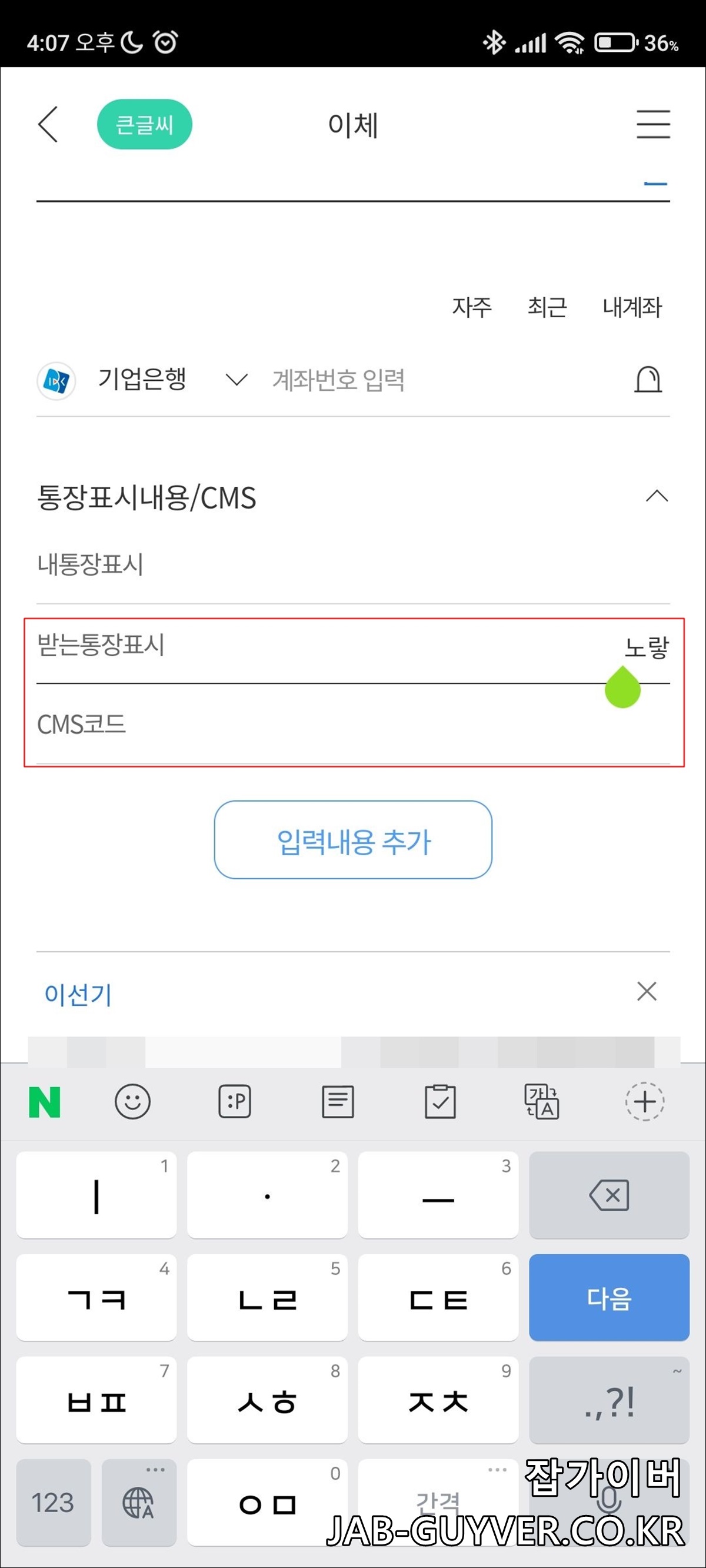 이렇게 하면 여러번 송금할때 각각 이름을 달리해서 받느사람 이름을 변경할 수 있습니다.