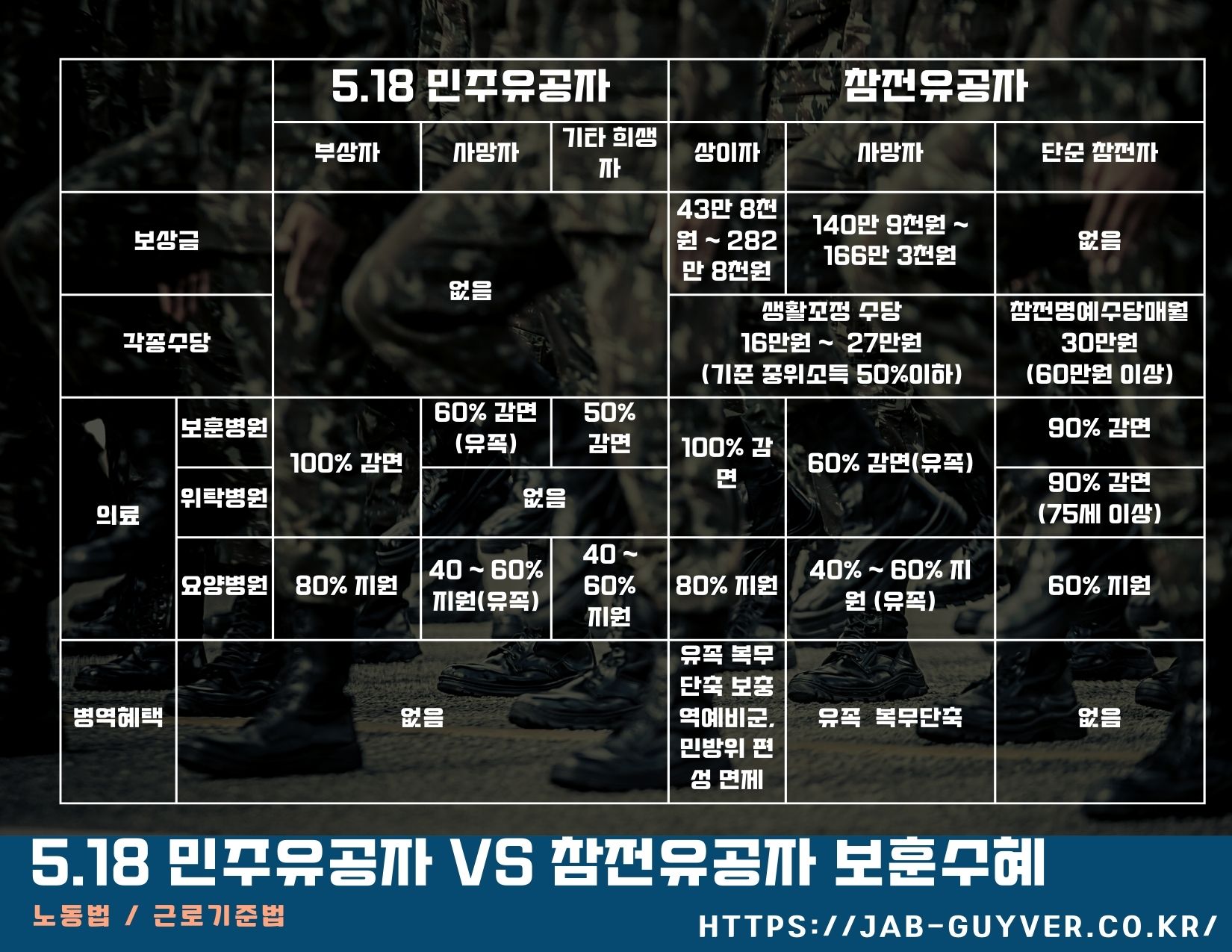 5.18 민주유공자 vs 참전유공자 보훈수혜 비교