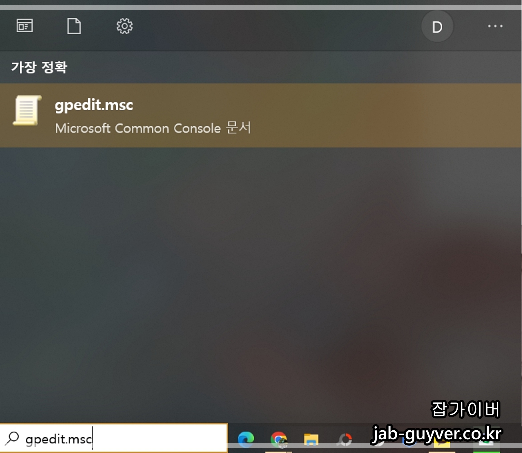 윈도우 관리서버를 실행하기 위해서 gpedit.msc 입력 후 확인을 눌러줍니다.