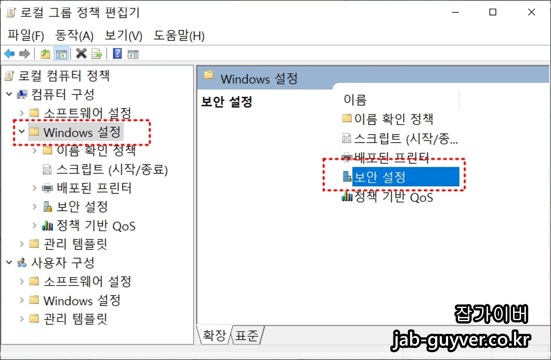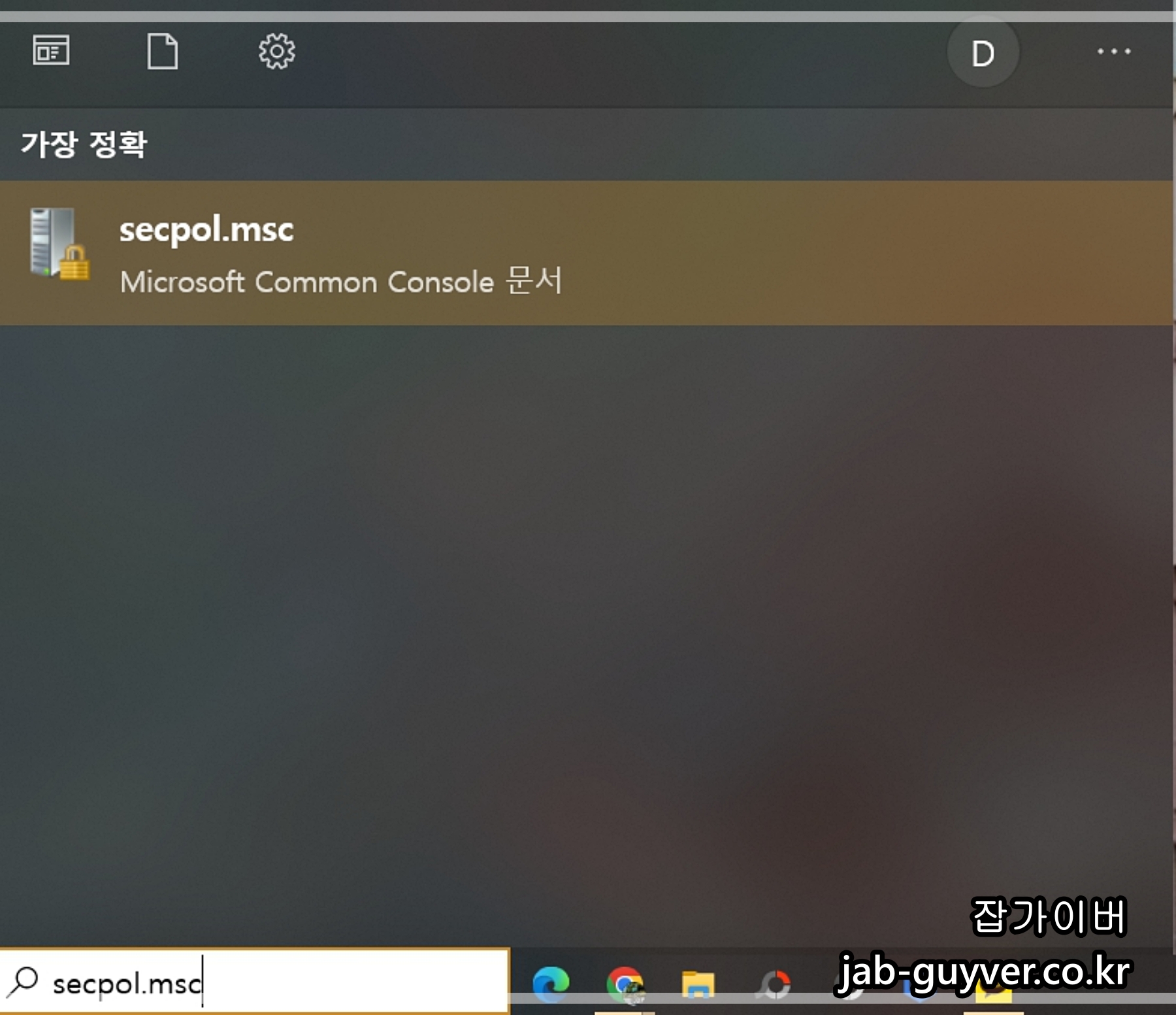 다른방법으로는 secpol.msc 입력 후 확인을 눌러도 됩니다.