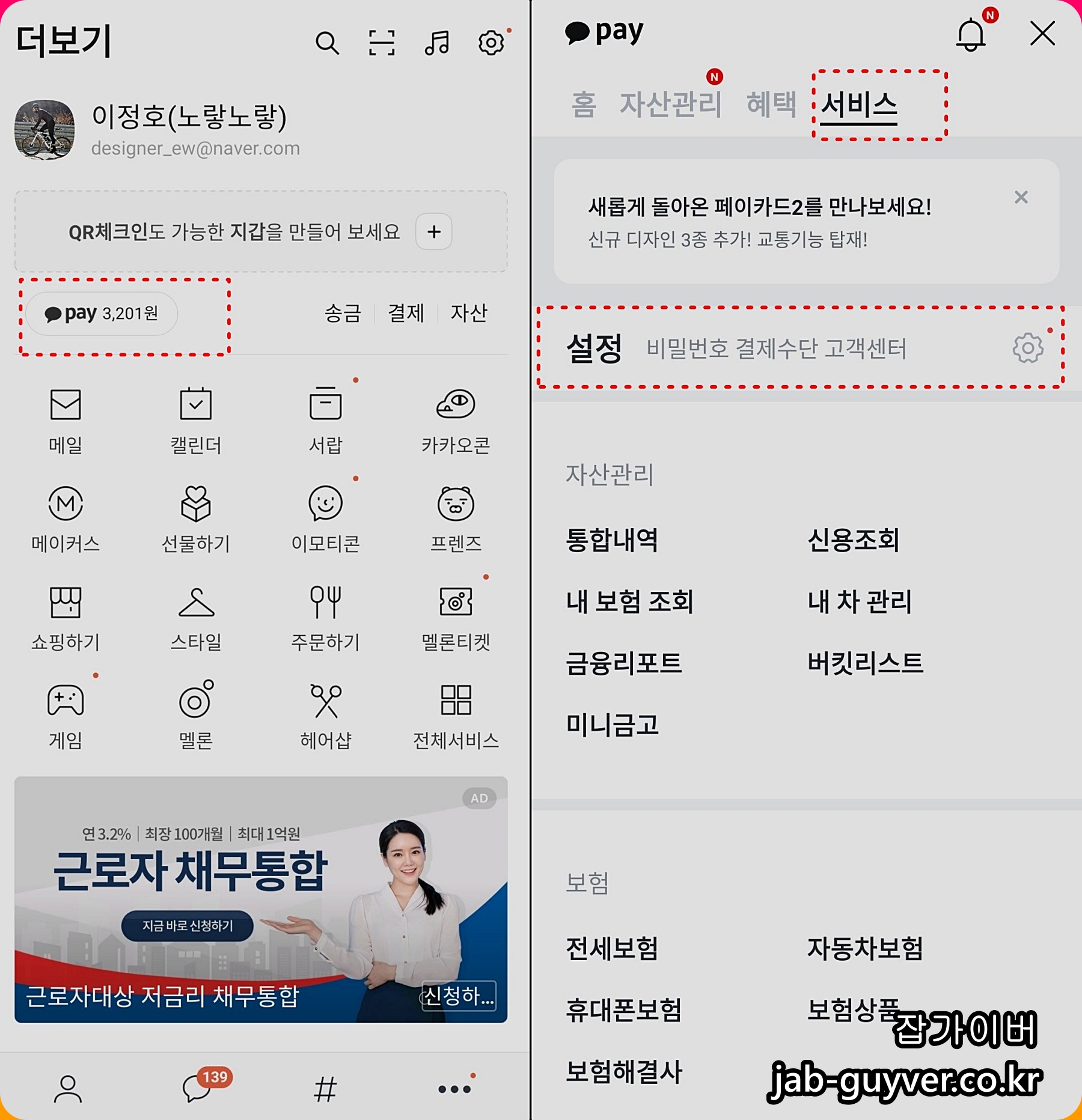 카카오페이 아이콘을 선택 후 설정으로 들어갑니다.