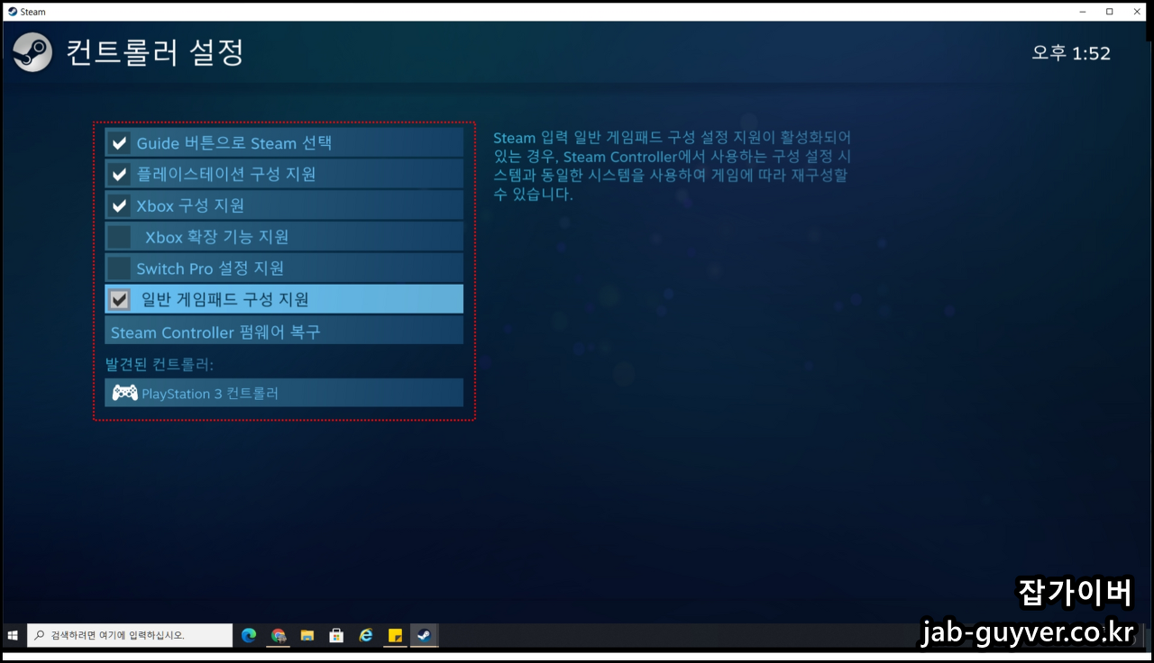 닌텐도스위치 게임패드 컴퓨터 연결 - 스팀 설정방법
