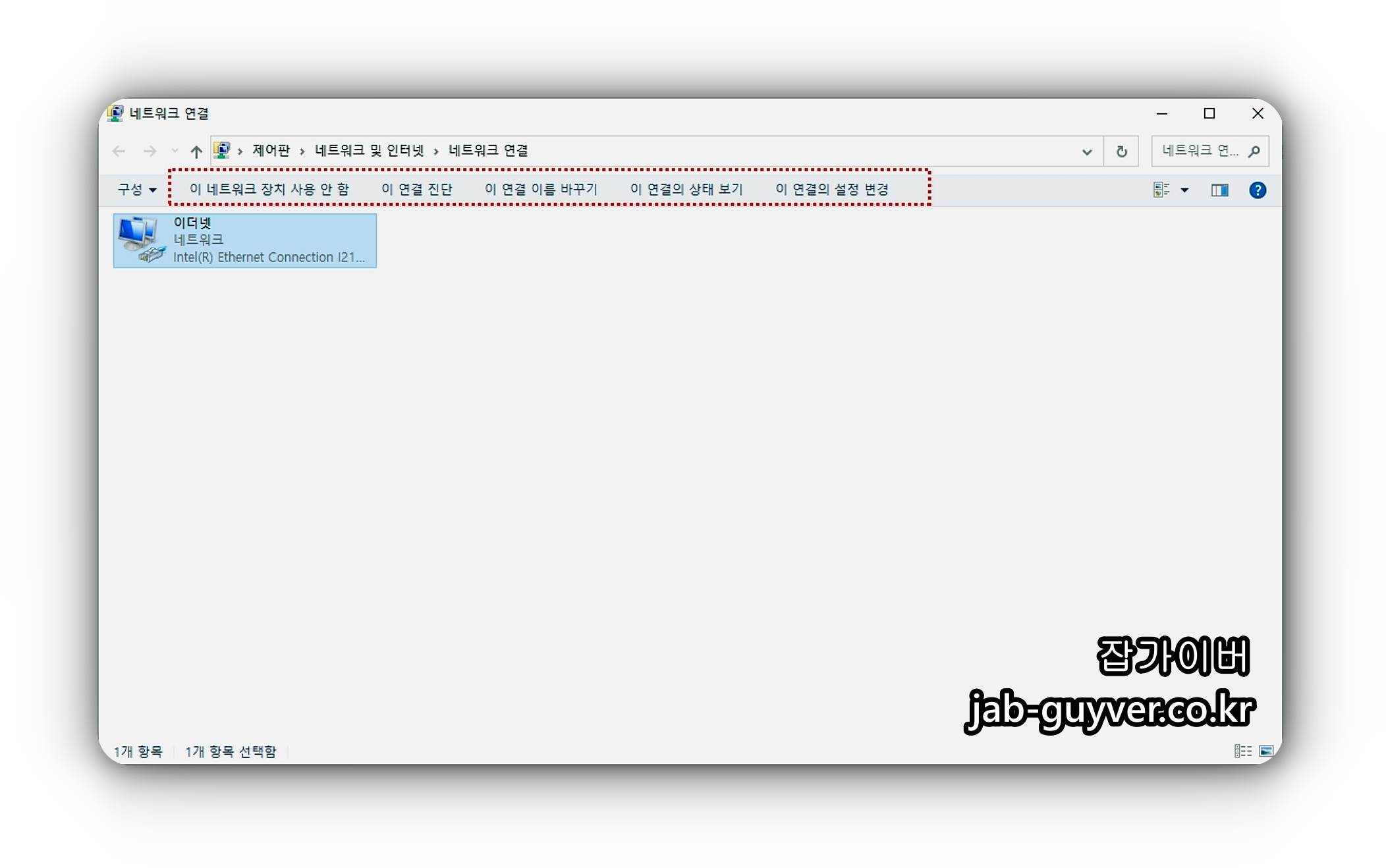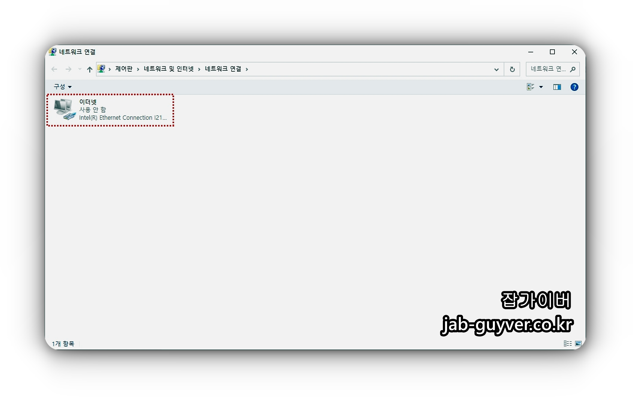 윈도우10 이전 버전이라면 어댑터 설정 변경에서 이더넷 설정을 사용안함으로 체크합니다.