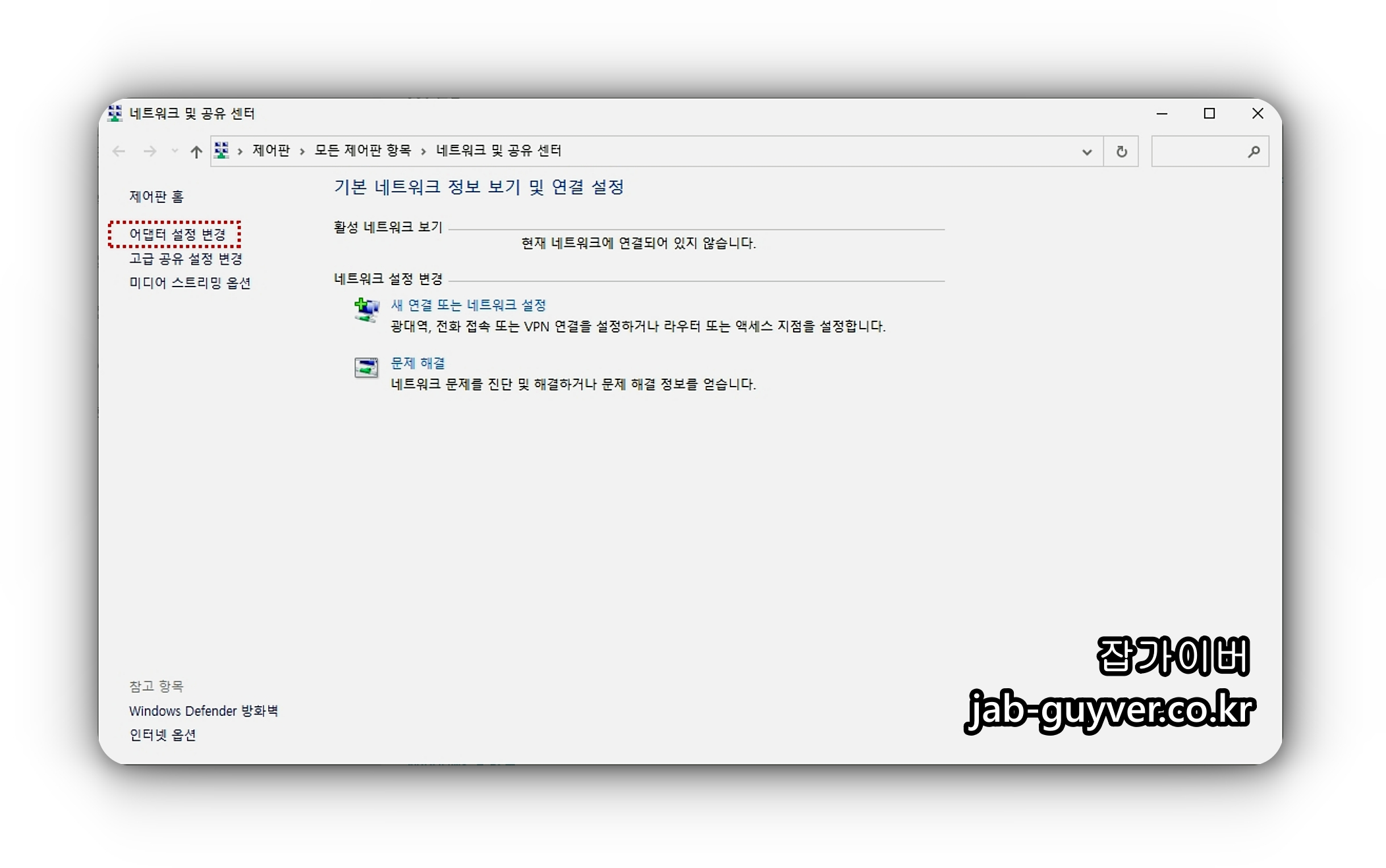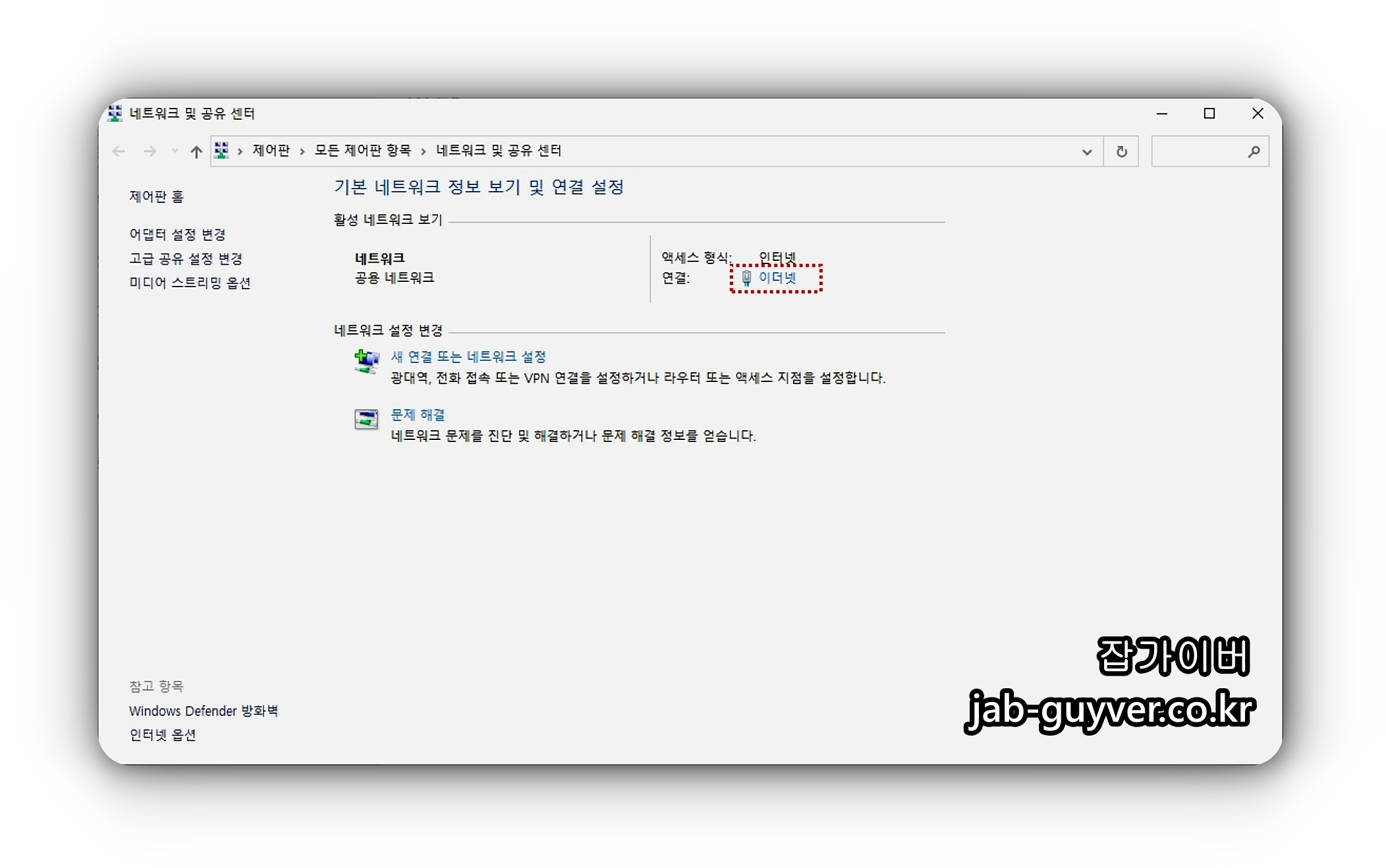 윈도우7 경우 제어판 -> 네트워크 및 인터넷 ->  네트워크 연결