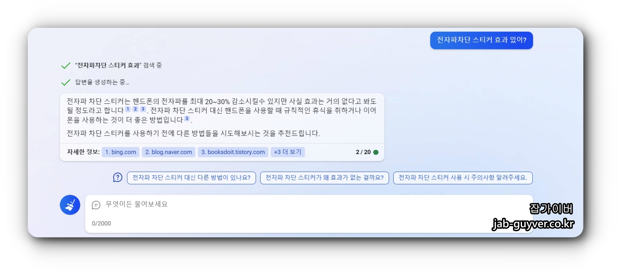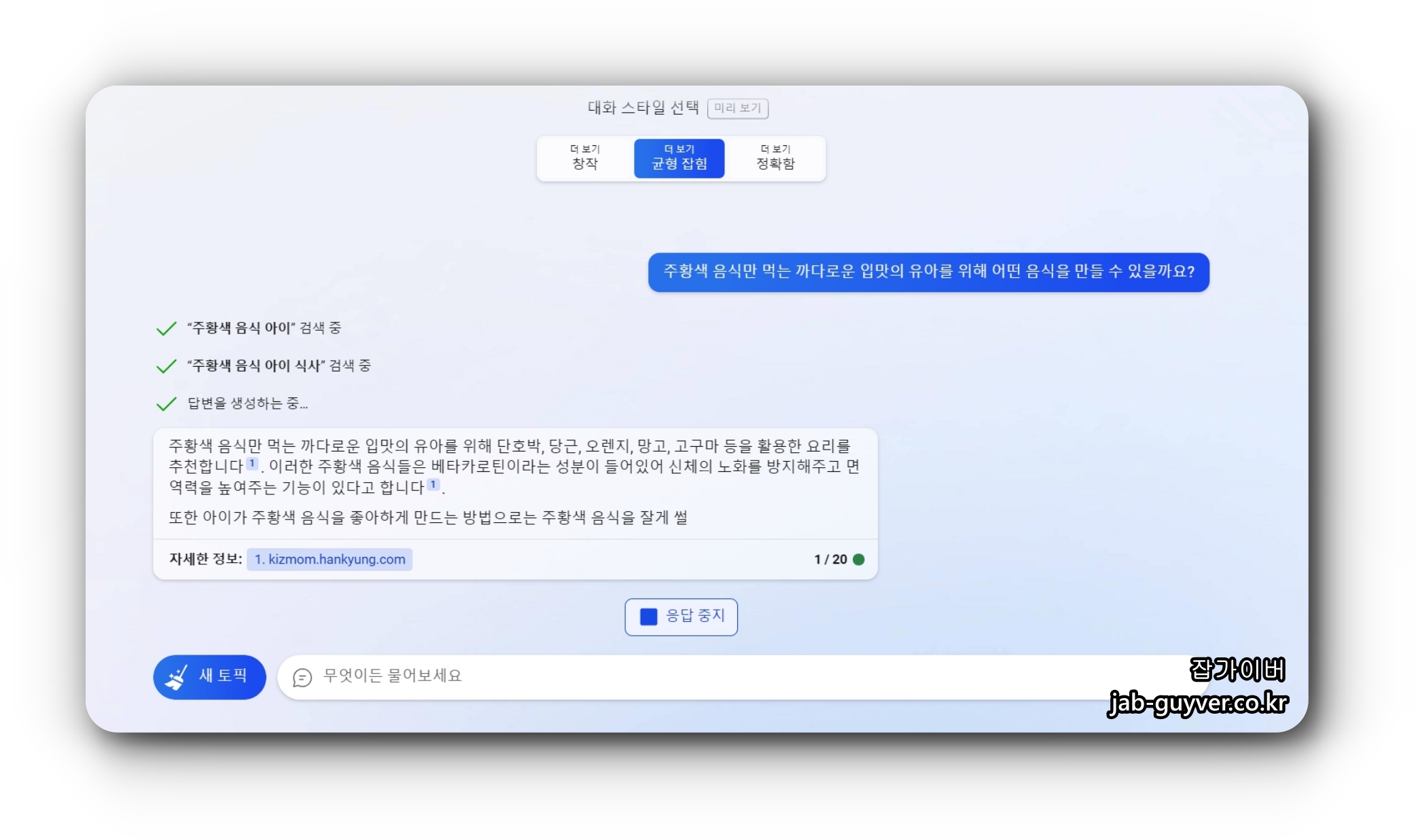 - 실시간 웹문서와 콘텐츠 검색을 기반으로 하는 답변 제공이 가능합니다