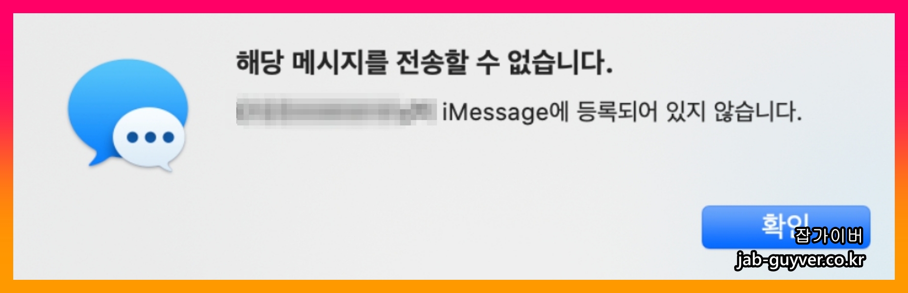 MacOS가 설치된 맥북이나 아이맥에서 iMessage를 통해 메시지 전송 시 해당 메시지를 전송할 수 없습니다. 라고 하면서 해당 iMessage에 등록되어 있지 않습니다 라고 알림이 뜨는 경우 가 있습니다.