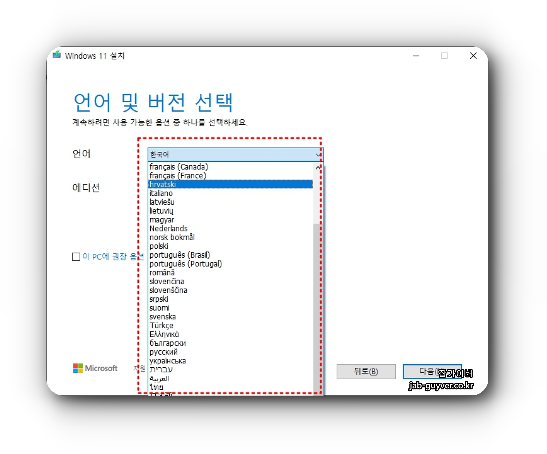 이후 윈도우 언어 및 아키텍쳐 버전등을 선택합니다.