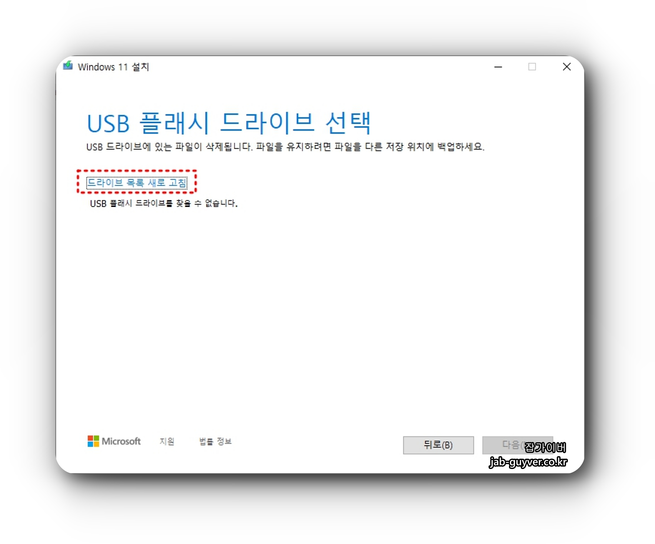 그리고 8GB 이상의 USB 메모리카드를 삽입 후 실행합니다.