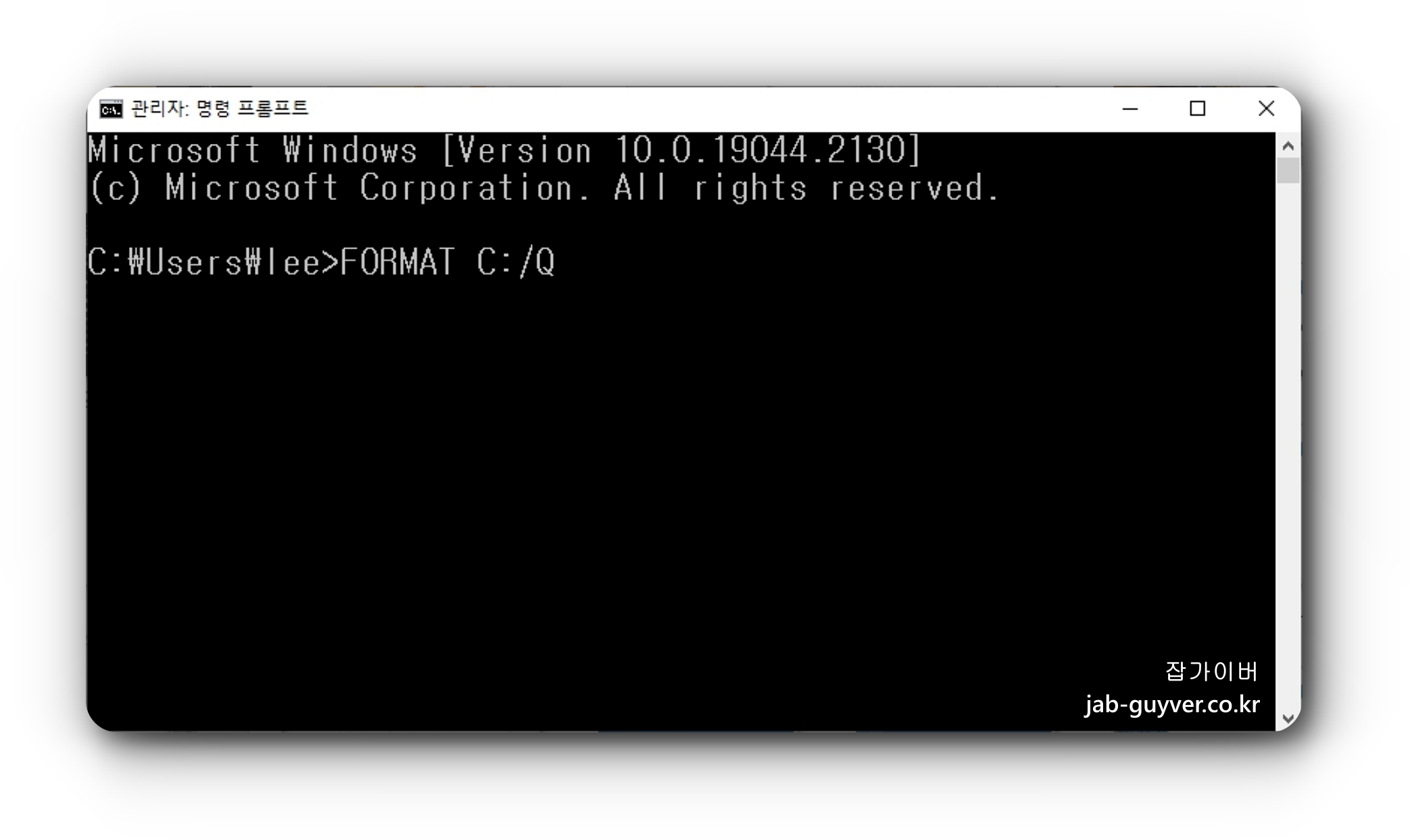 포맷 명령어를 사용하여 윈도우가 설치된 드라이브를 완전히 초기화합니다.