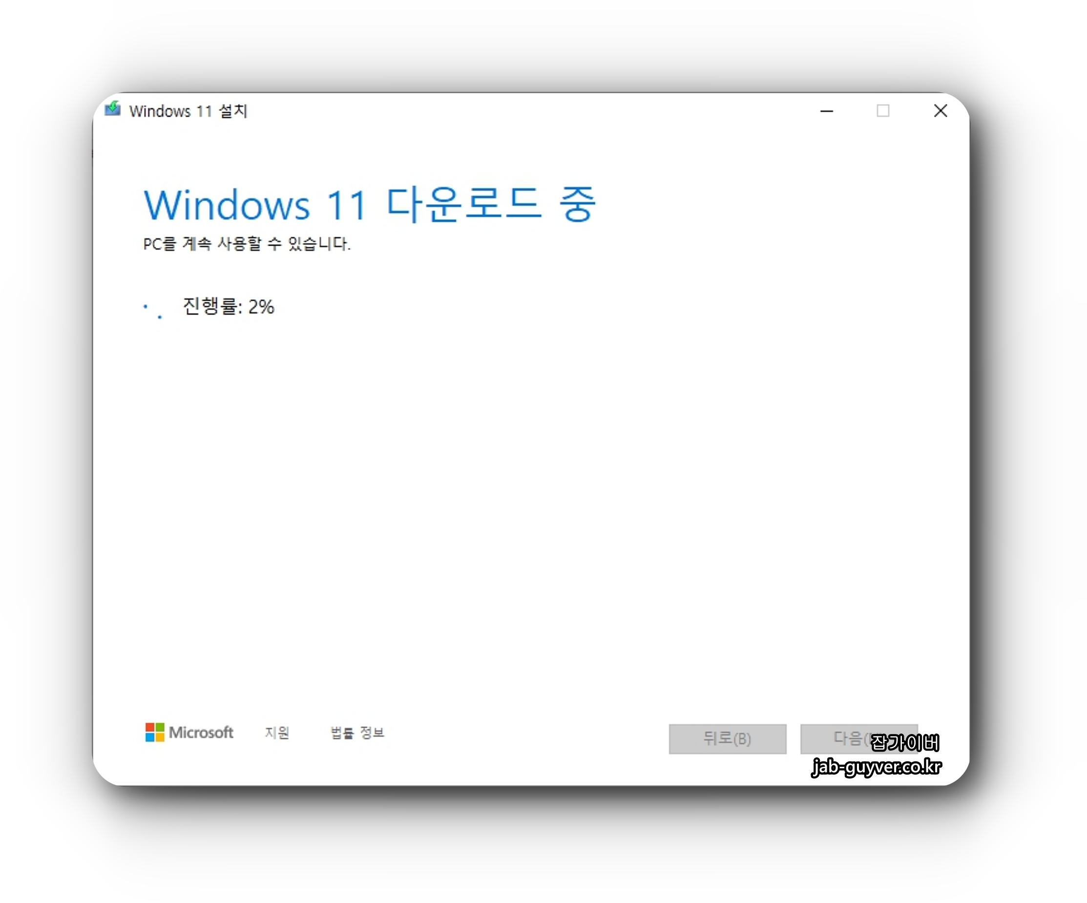 USB 플래시 드라이브 선택 후 다음을 눌러주면 자동으로 윈도우 설치파일이 다운로드 됩니다.