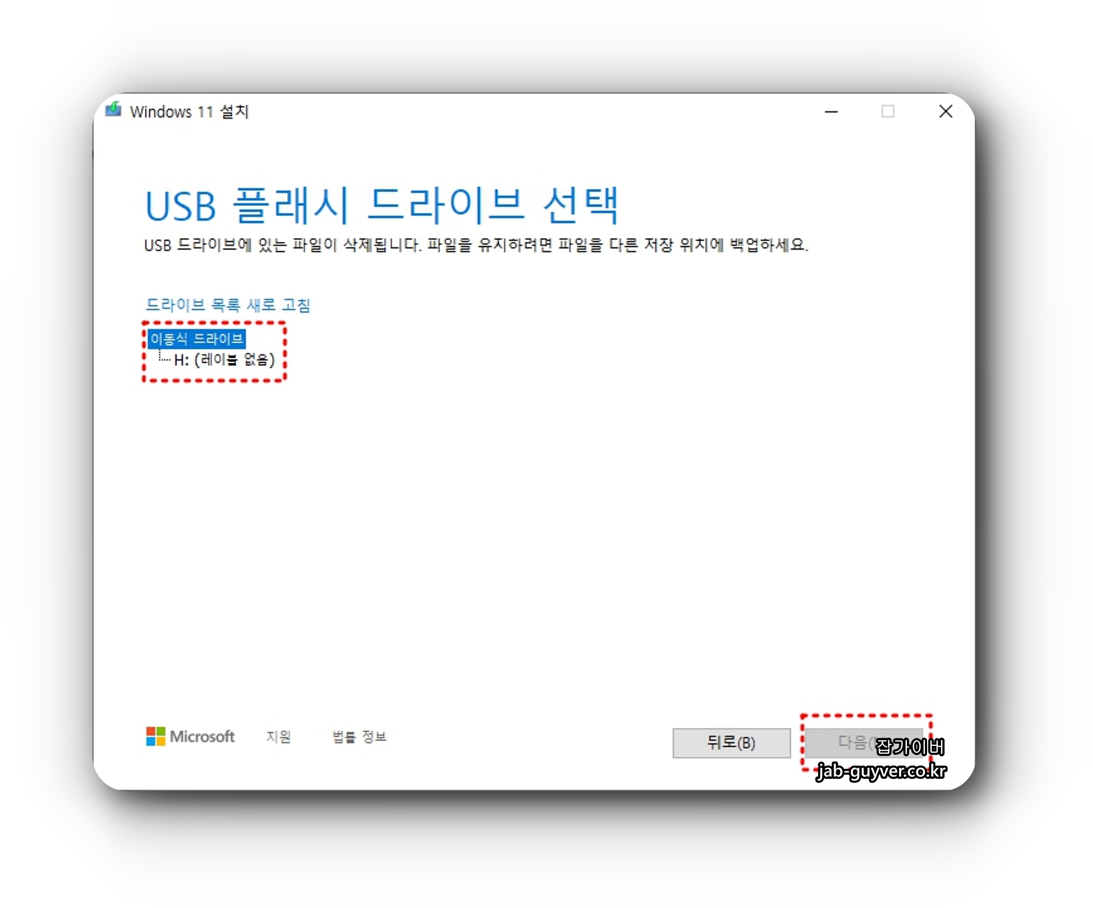 그리고 8GB 이상의 USB 메모리카드를 삽입 후 실행합니다.