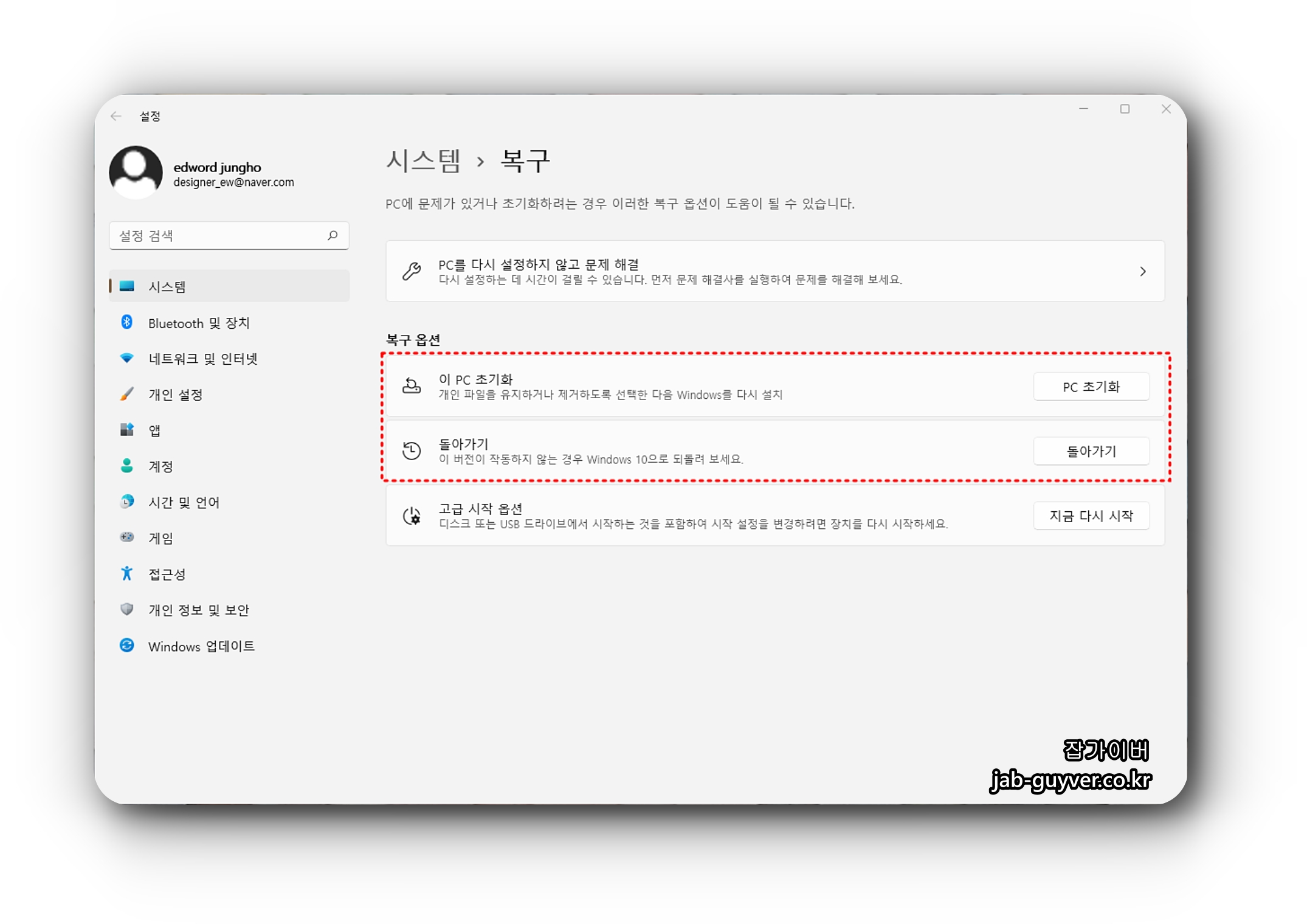 윈도우11 업그레이드 전 윈도우 되돌아가기
