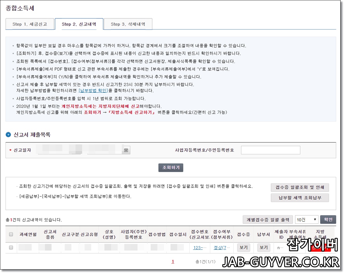 종합소득세 지방소득세 납부 및 납부확인증 출력