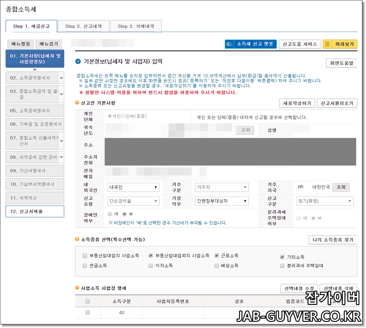 종합소득세 신고를 위해서는 먼저 신고서 작성이 필요합니다.