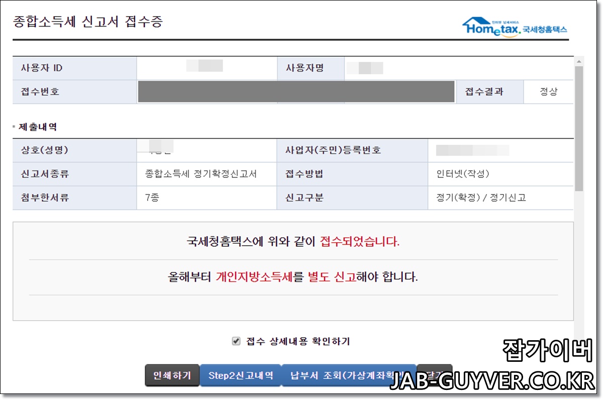 종합소득세 신고서  접수완료 납부영수증 출력 가능