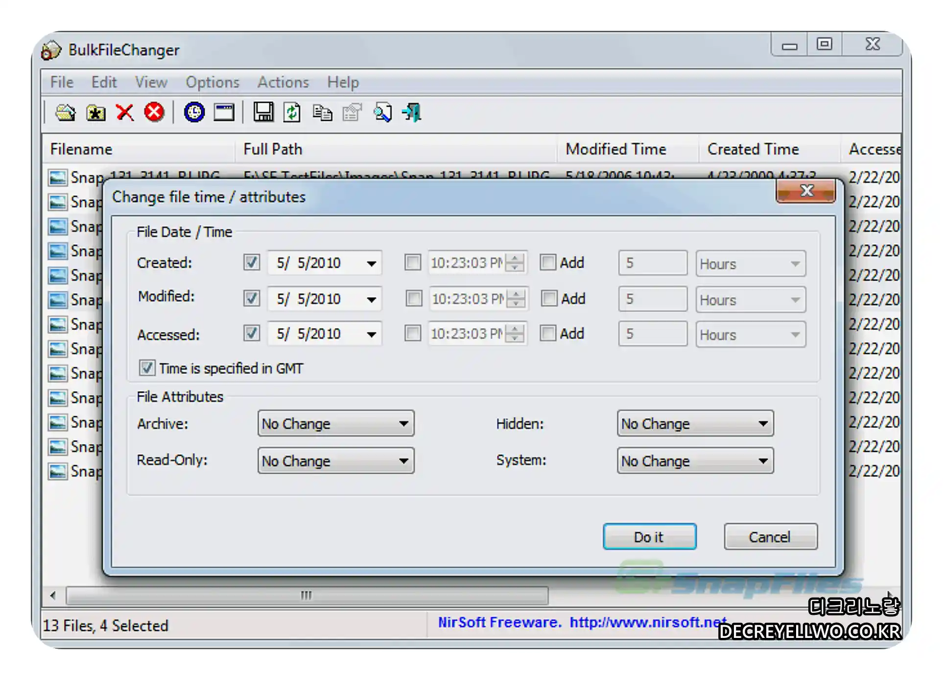 그중 흔히 사용하는 프로그램으로는 BulkFileChanger 프로그램을 사용해 다양한 파일의 날짜를 변경할 있습니다.