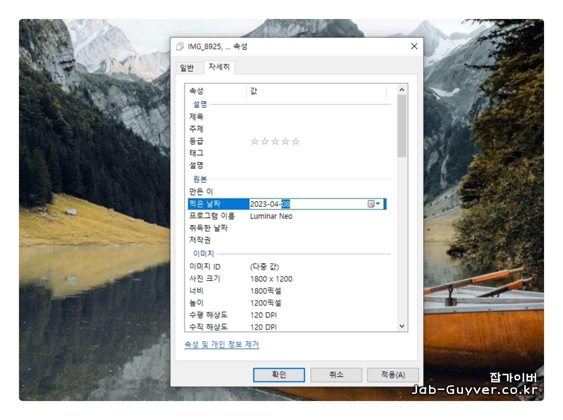 카메라 사진 및 이미지 촬영날짜 및 저장시간 메타 Exif 정보 변경