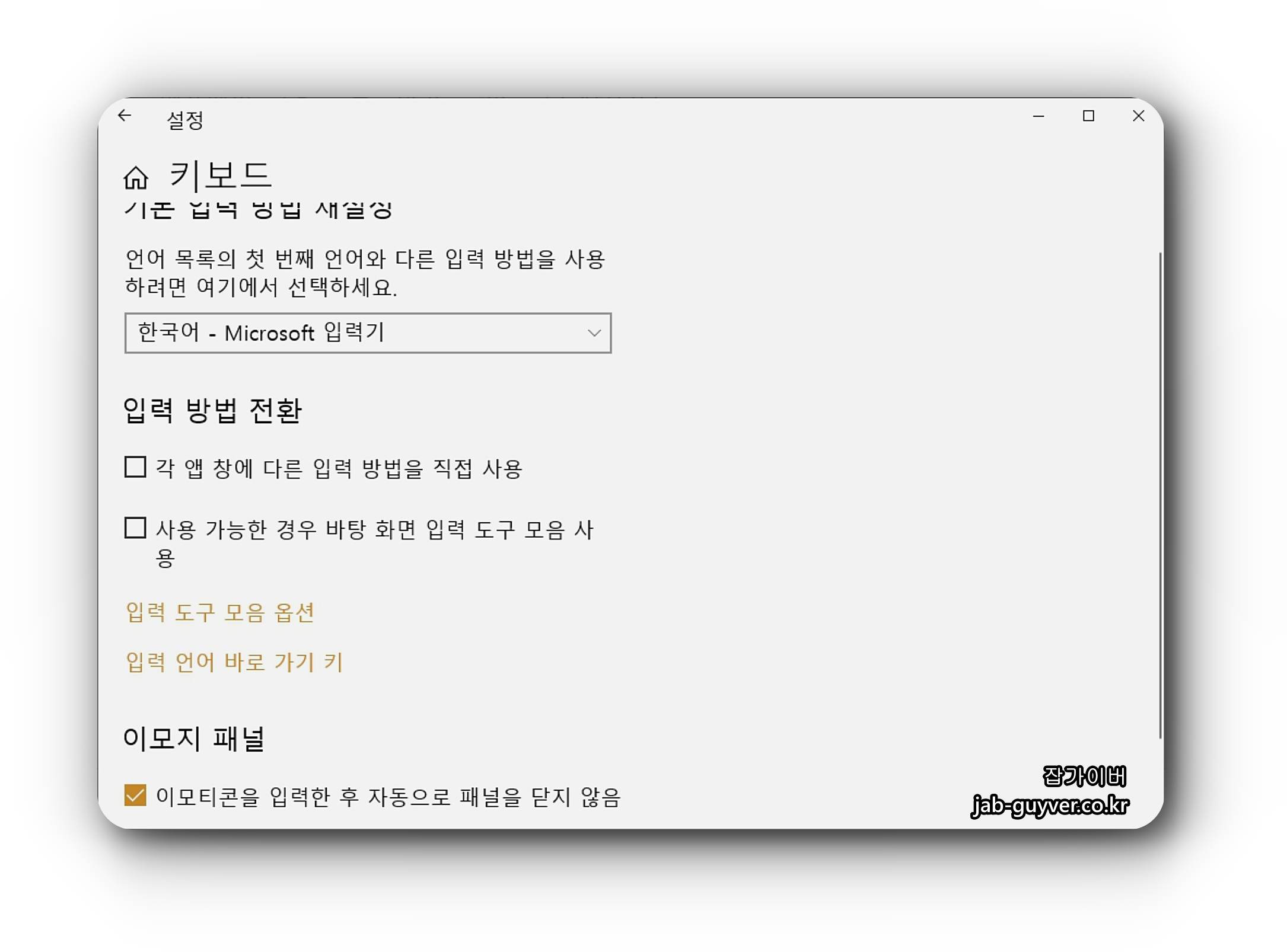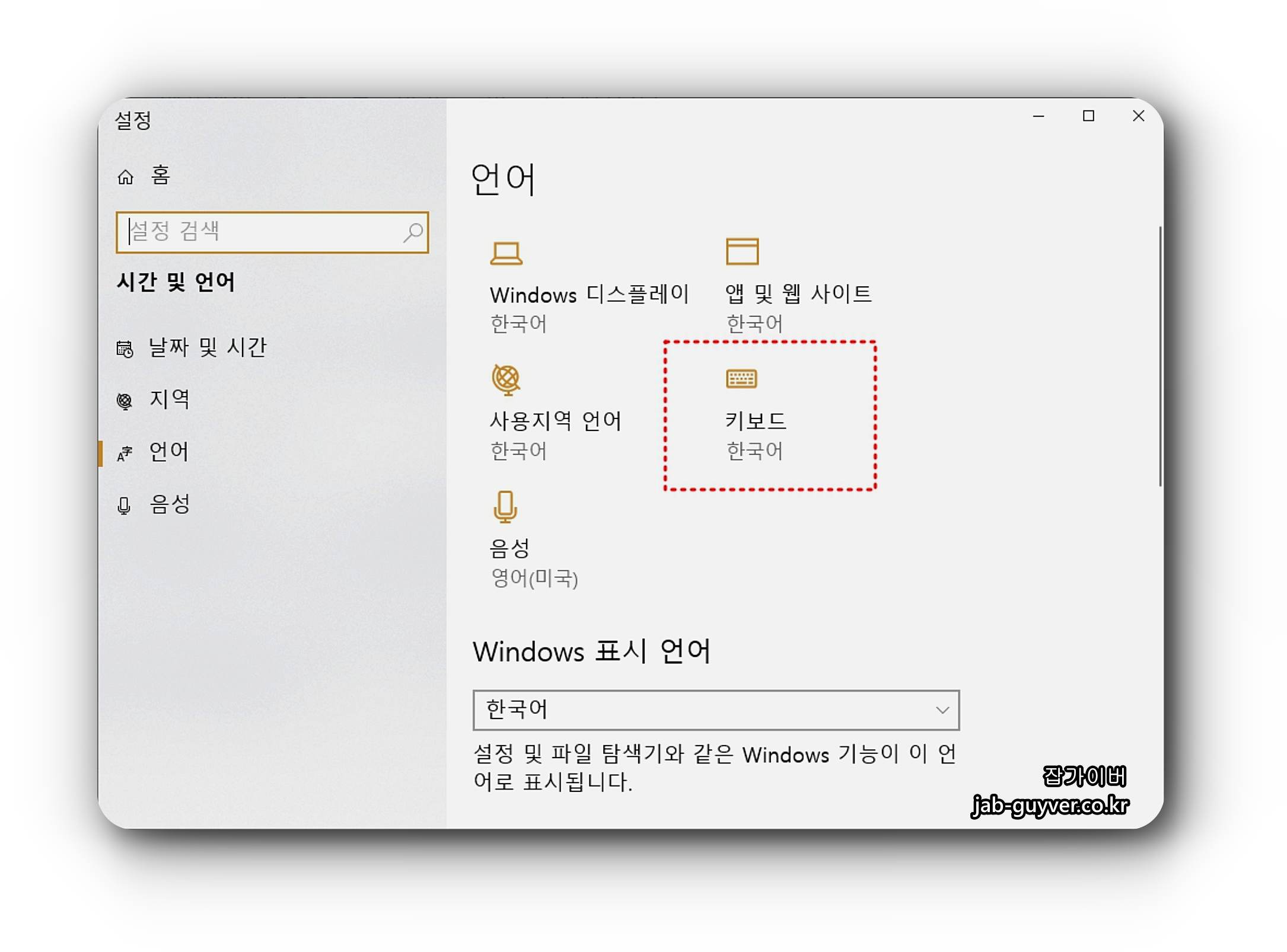 윈도우 시간 및 언어 키보드 설정