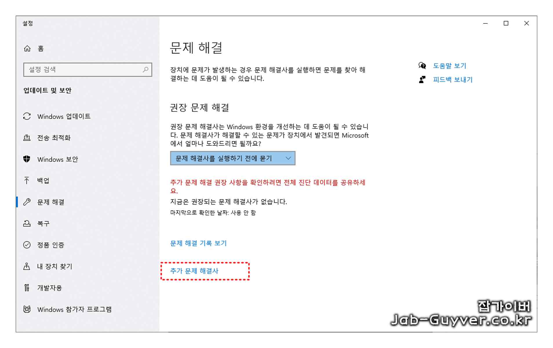 문제 해결사가 실행되면, 사용자의 OS에 문제가 있다면 해당 항목을 수정할 수 있습니다.
