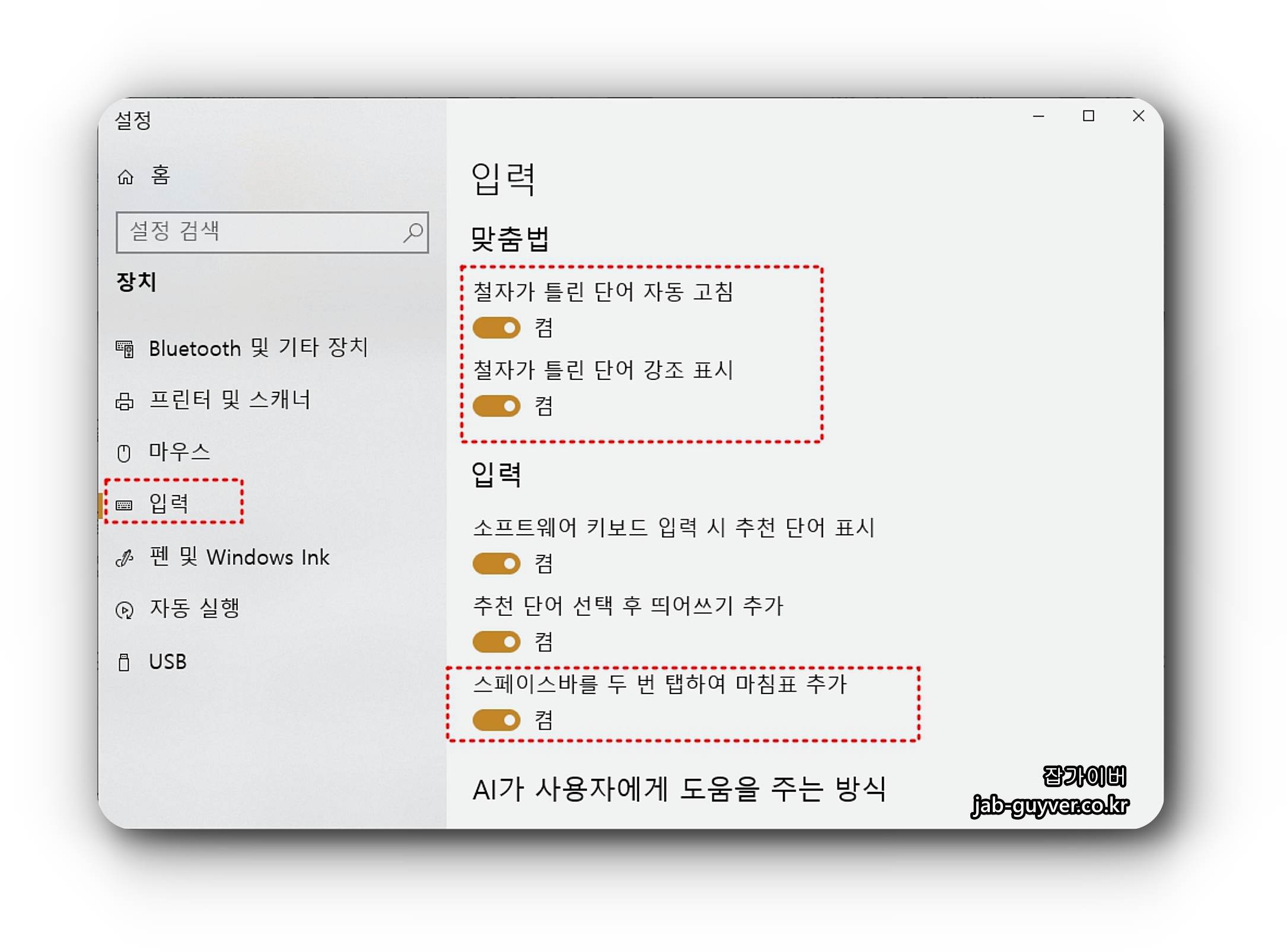 그리고 스페이스바를 두번 눌러주면 마침표가 나오도록 설정할 수 있습니다.