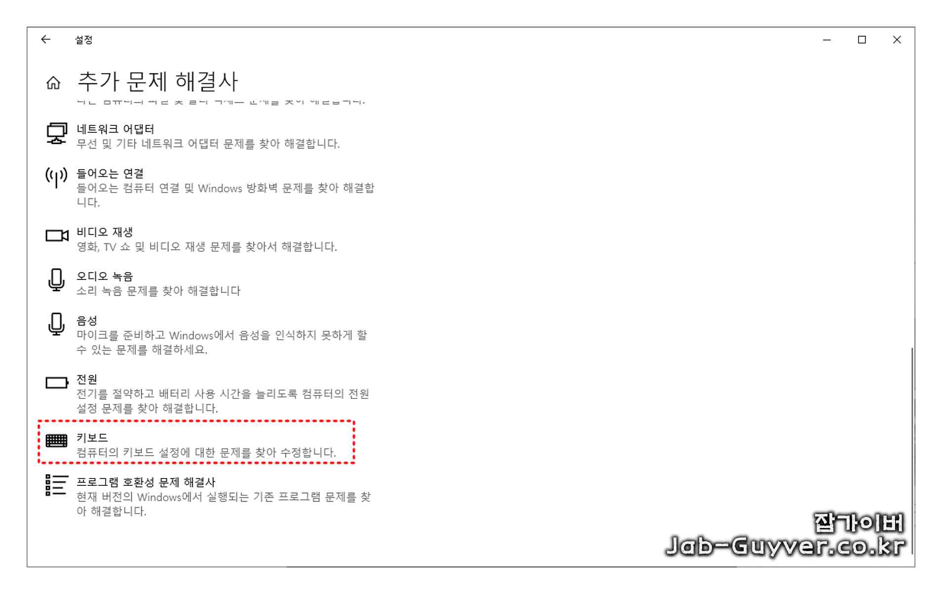 만약 사용하는 키보드가 입력이 안되거나 오작동한다면, 먼저 키보드 문제 해결사를 사용하여 점검해보시기를 권장합니다.